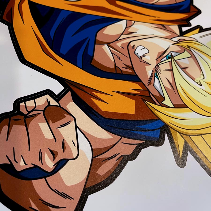 2x Pair Side Son Goku v1 Super Saiyan Awakening Yellow SSJ SSJ1 Ki Kakarot Aura Universe 7 Kamehameha Z Super DBZ Kai Anime Manga Printed Car Vinyl Sticker Decal