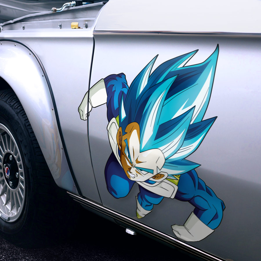 2x Pair Side Vegeta Blue Super Saiyan SSB SSJB Prince Fallen Saiyan Armor Bodysuit Universe 7 Frieza Force Z DBZ Anime Manga Printed Car Vinyl Sticker Decal