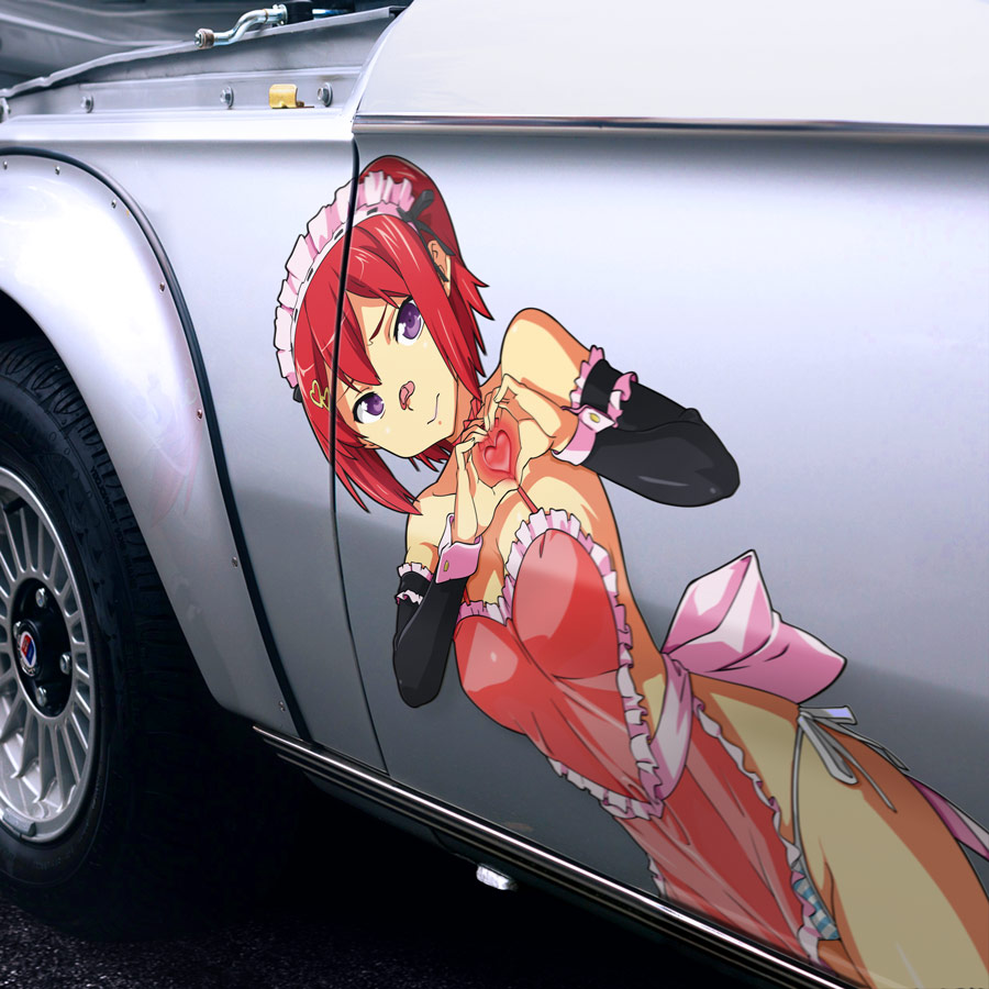 2x Pair Side Azuki Shinatsu Tenbi Academy Kamigari Maid Macaron Power Maken Senpai Otaku Anime Manga Girls Sexy Printed Car Vinyl Sticker Decal