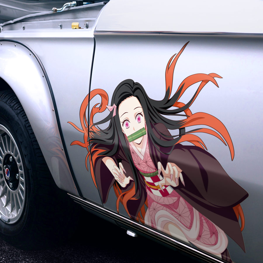 2x Pair Side Nezuko Kamado v1 Awakened Form Bamboo Gag Kimono Senpai Otaku Anime Manga Girls Sexy Printed Car Vinyl Sticker Decal