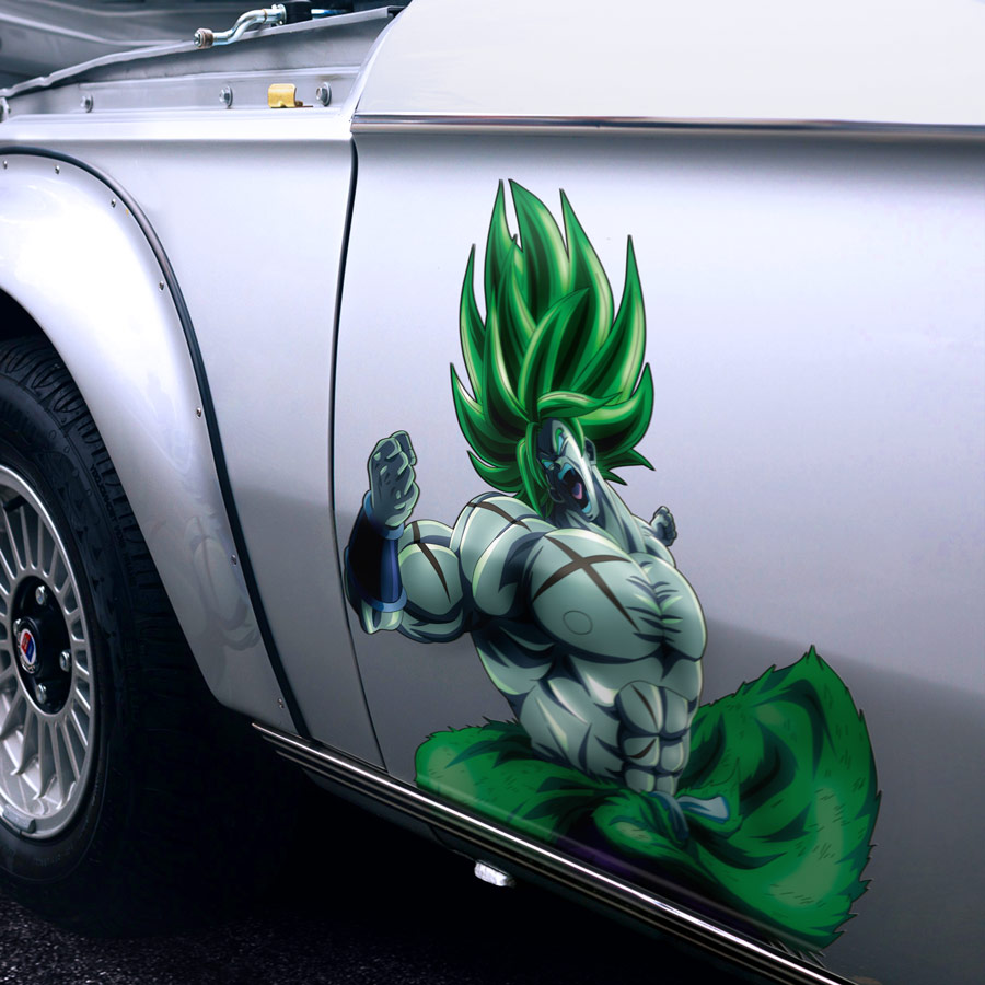 2x Pair Side Broly v1 Legendary Super Saiyan LSSJ Rampage Universe 7 Berserker Mutant Paragus Son Kai DBZ Anime Manga Printed Car Vinyl Sticker Decal