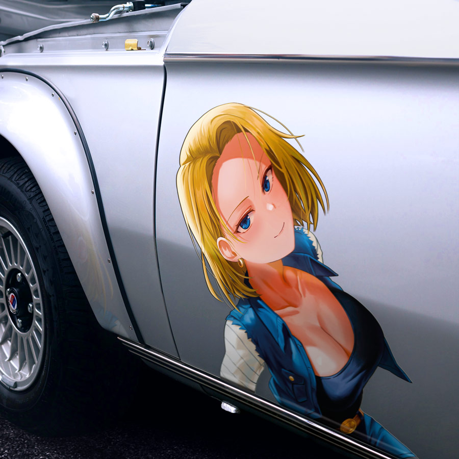 2x Pair Side Android 18 Lazuli Mrs Krillin Goku Capsule Corporation Red Ribbon Army Team Universe 7 Sexy Hot Waifu Anime Manga Printed Car Vinyl Sticker Decal