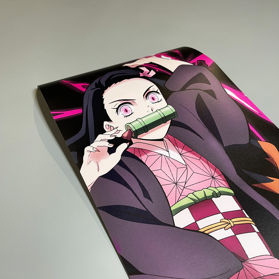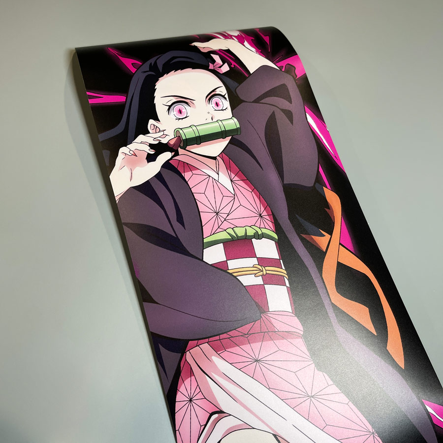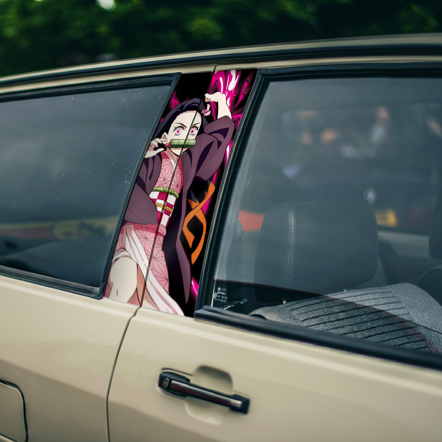 Nezuko Kamado v1 Bamboo Stick Angry Cute Demon Anime Manga Printed Car Door B Pillar Vinyl Wrap Sticker