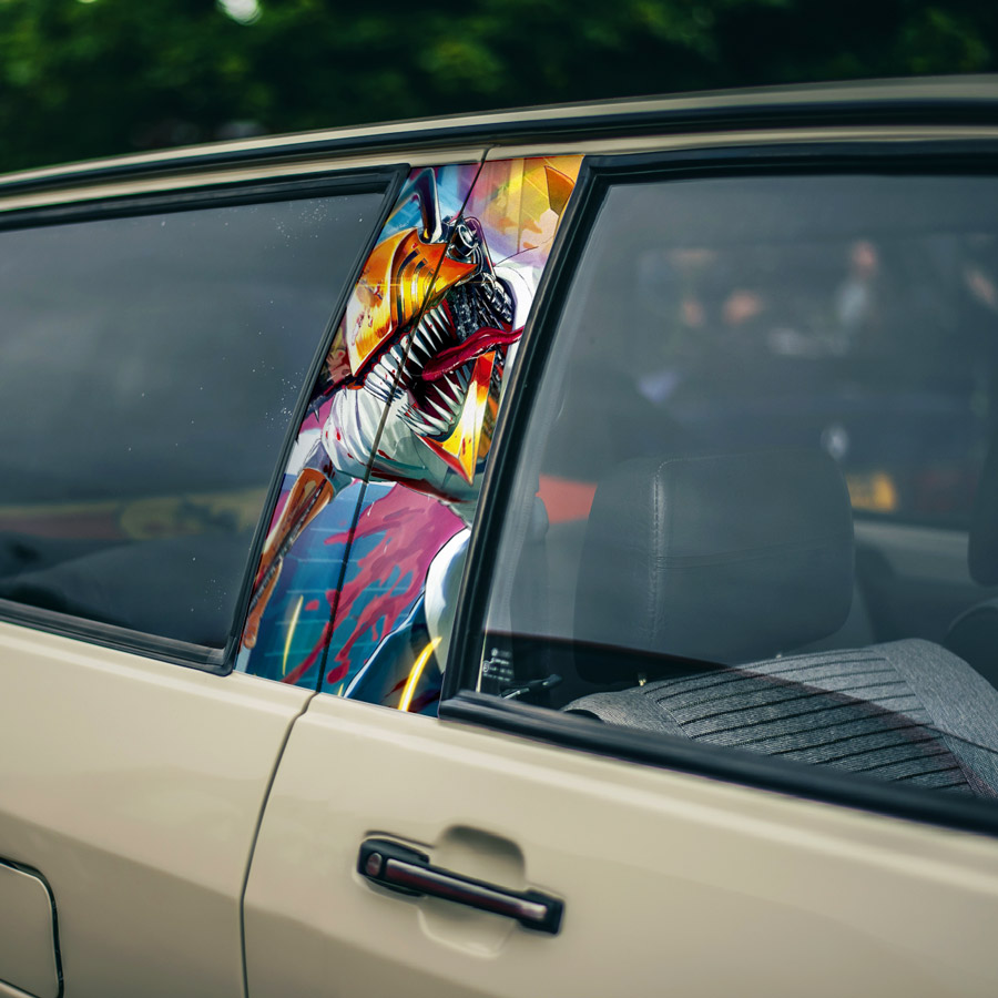 Denji v2 Public Safety Devil Hunter Pochita Saw Makima Squad Manga Anime Printed Car Door B Pillar Vinyl Wrap Sticker