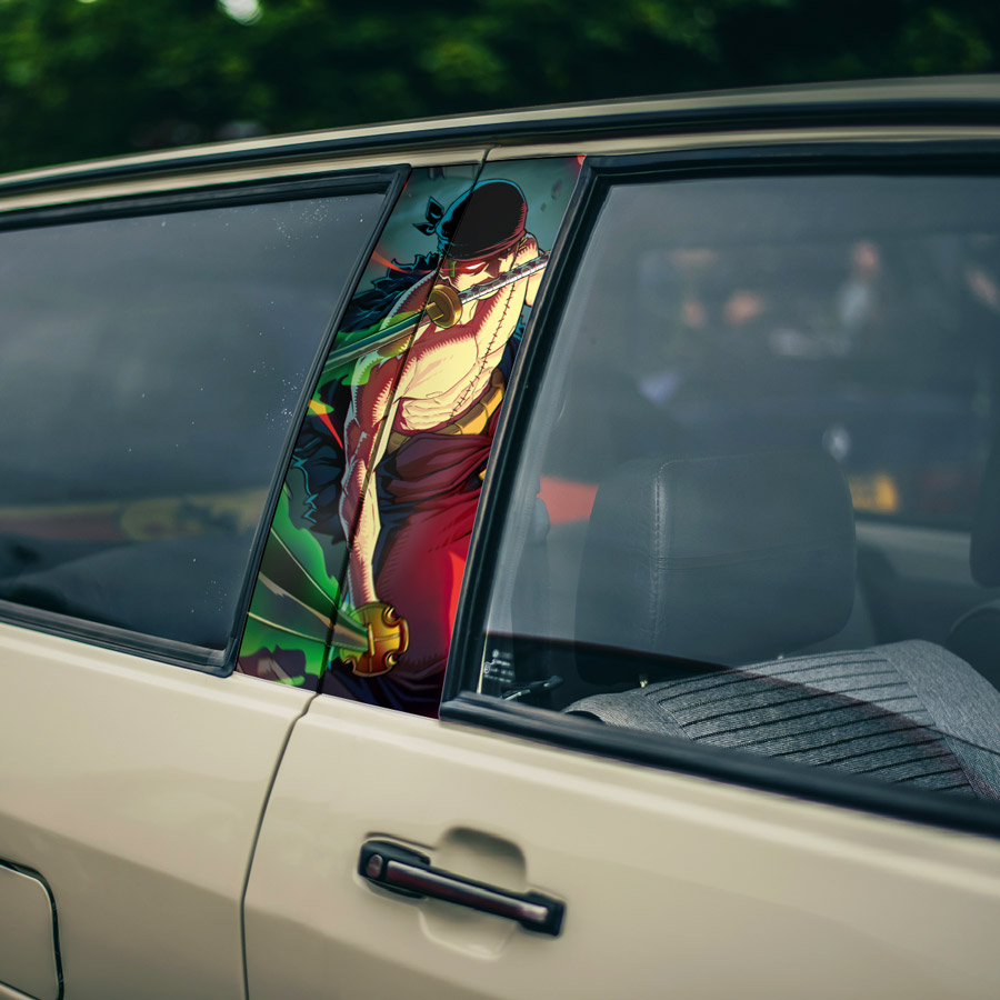 Roronoa Zoro v1 Pirate Hunter Straw Hat Grand Fleet Three Swords Bounty Anime Manga Printed Car Door B Pillar Vinyl Wrap Sticker