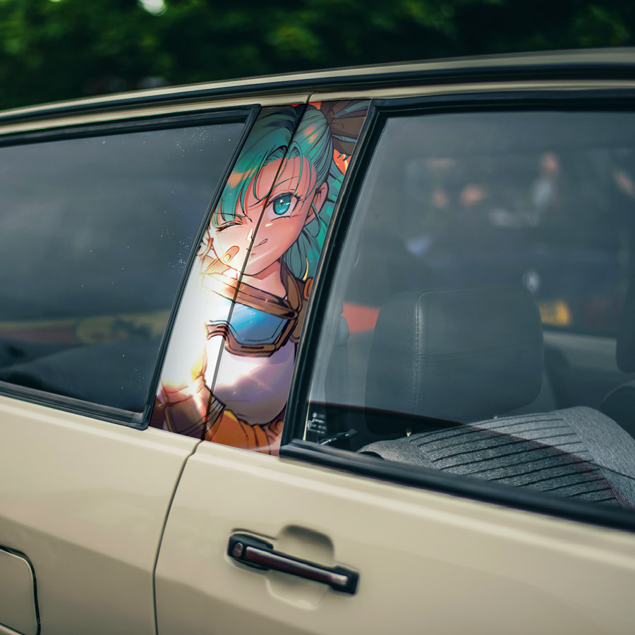 Bulma v1 Brief Engineer Wild Rider Suit NAX Goggles Patch Gun Capsule Corporation Z DBZ Anime Manga Printed Car Door B Pillar Vinyl Wrap Sticker