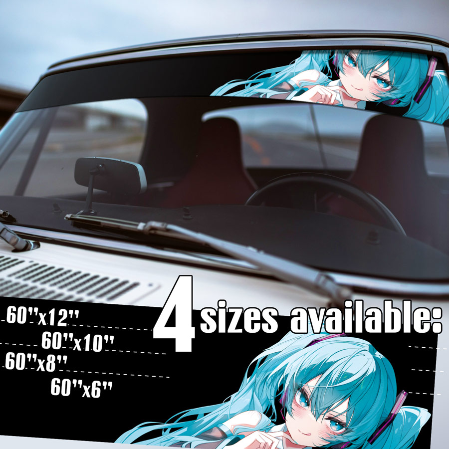 60" Miku 01 v3 Vocaloid Virtual Idol Singer Weeb Otaku Waifu Anime Manga Sun Strip Printed Windshield Car Vinyl Sticker Decal
