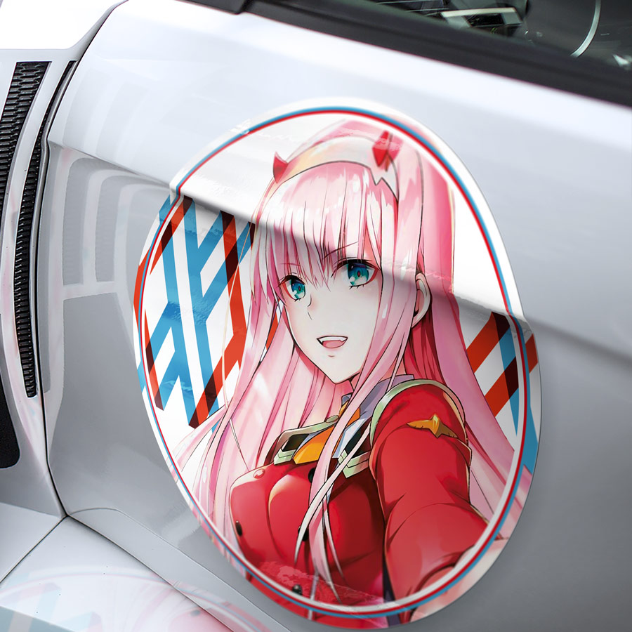 2x Pair Zero Two Code 002 v1 Strelizia Sutorerichia Klaxo Sapien Parasites Sexy Girl Otaku Meatball Car Door Circle Printed Vinyl Sticker Decal
