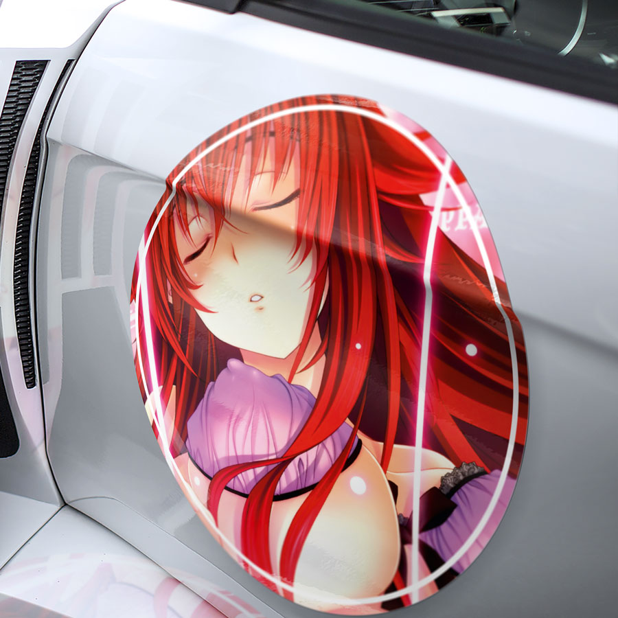 2x Pair Rias Gremory v2 Lucifer Devil Kuoh Academy Crimson-Haired Ruin Princess Senpai Otaku Anime Manga Meatball Car Door Circle Printed Vinyl Sticker Decal