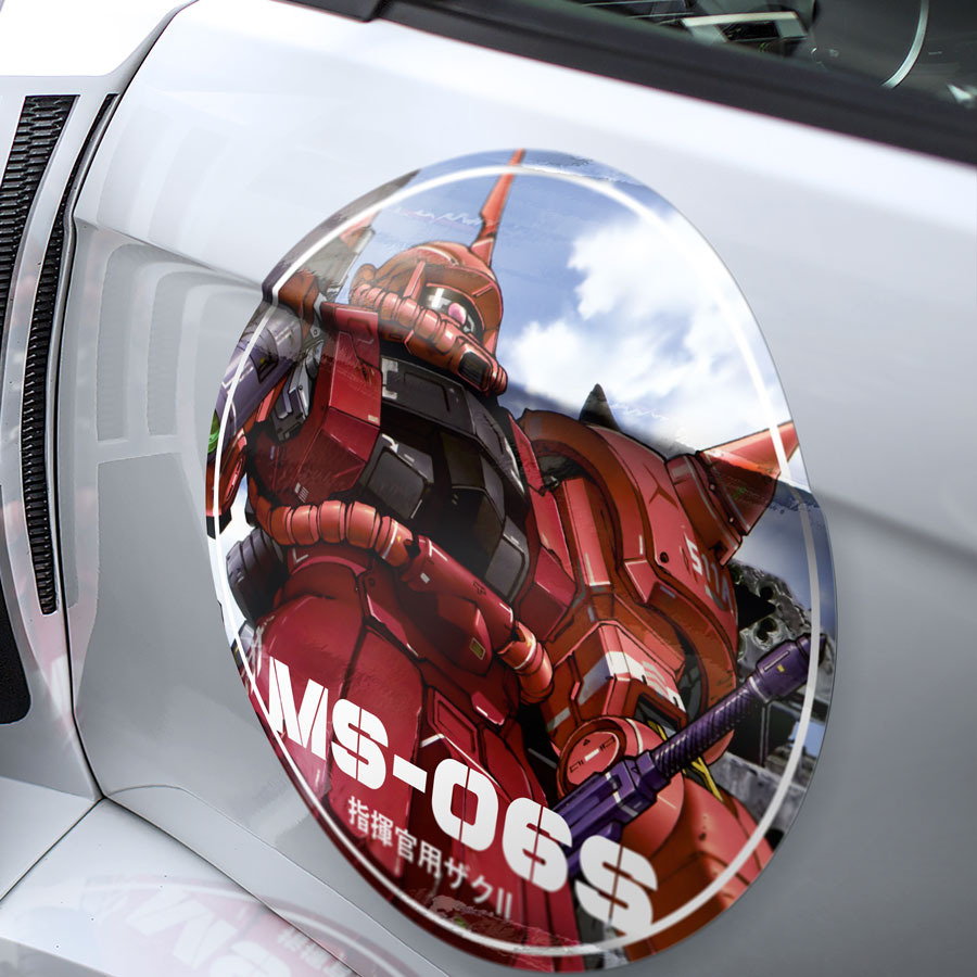2x Pair MS-06S Zaku II v2 Commander Type Red Comet Char Aznable Squadron Unit A12 Principality Zeon Axis Anime Manga Meatball Car Door Circle Printed Vinyl Sticker Decal