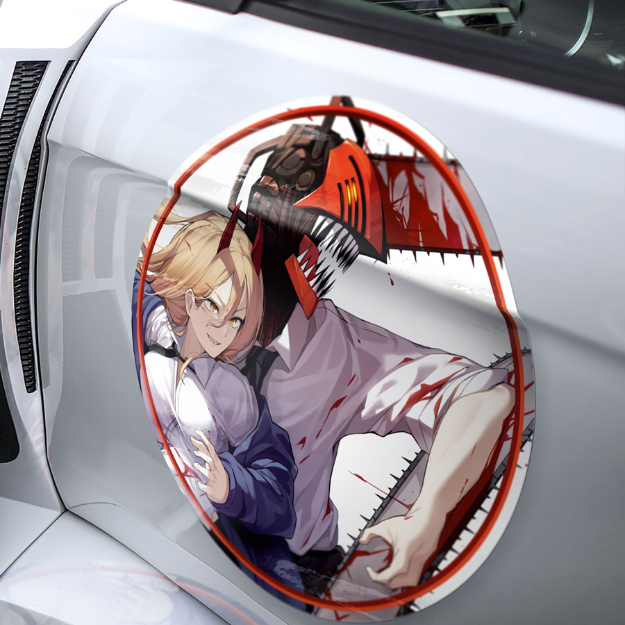 2x Pair Denji Power v2 Public Safety Devil Hunter Pochita Saw Makima Squad Anime Manga Meatball Rondels Door Circle Printed Vinyl Decal