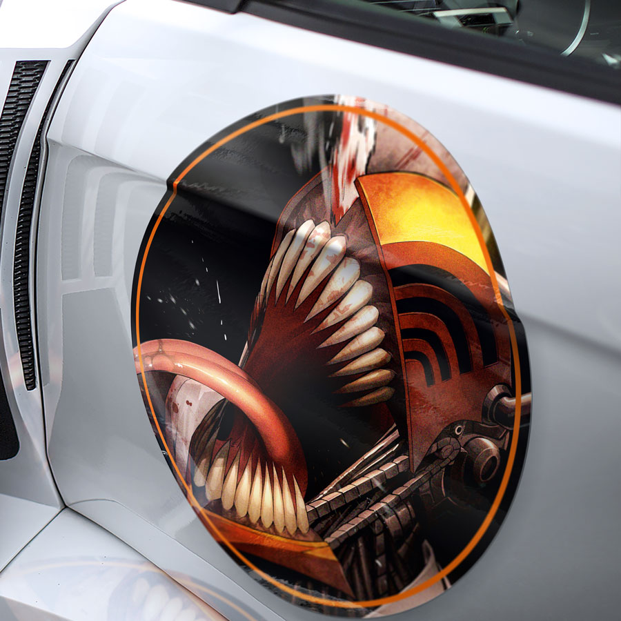 2x Pair Denji v3 Public Safety Devil Hunter Pochita Saw Makima Squad Anime Manga Meatball Rondels Door Circle Printed Vinyl Decal