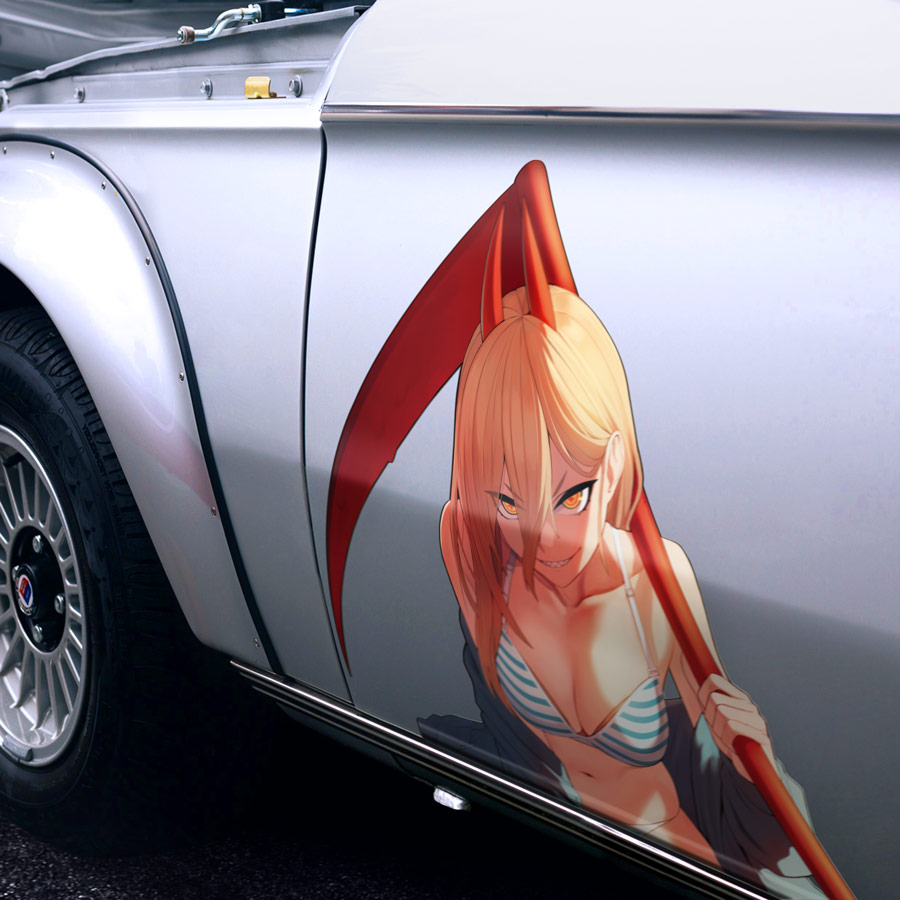 2x Pair Side Power v1 Scythe Blood Fiend Public Safety Devil Hunter Makima Squad Waifu Hot Boobs Manga Anime Car Vinyl Sticker Decal
