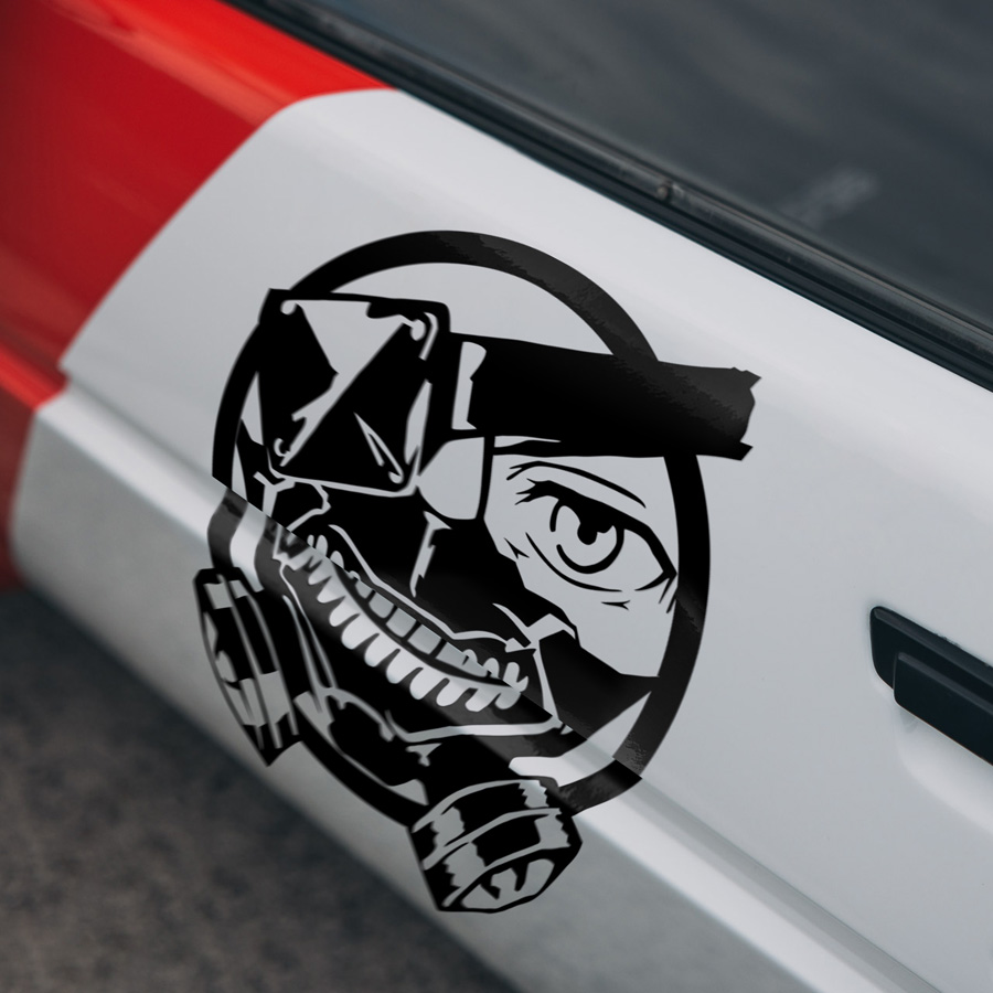 2x Pair Side Ken Kaneki One-Eyed King Eyepatch Kakugan Mask Zipper Kagune Anteiku CCG Goat Quinx Smile Teeth Manga Anime Car Vinyl Sticker Decal