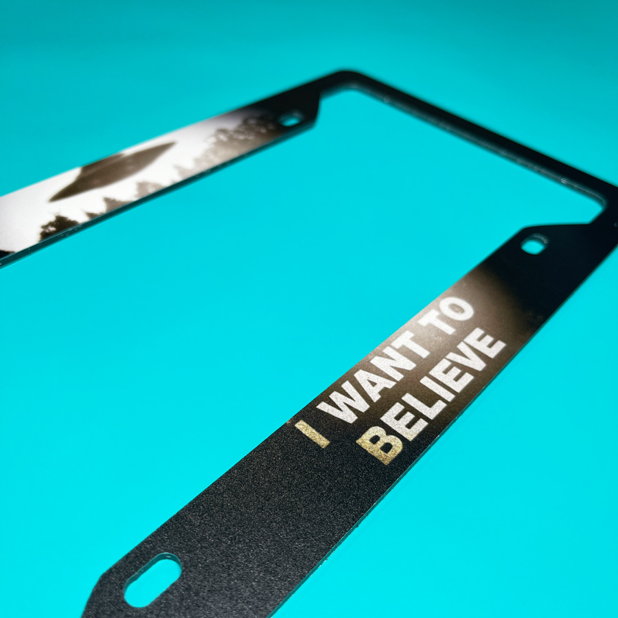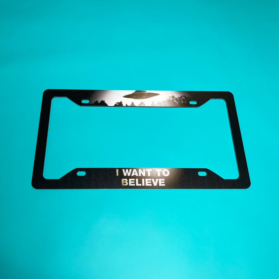 I Want to Believe UFO Files Conspiracy Aliens Mulder Scully Truth Out There Printed Aluminum Composite Car License Plate Frame