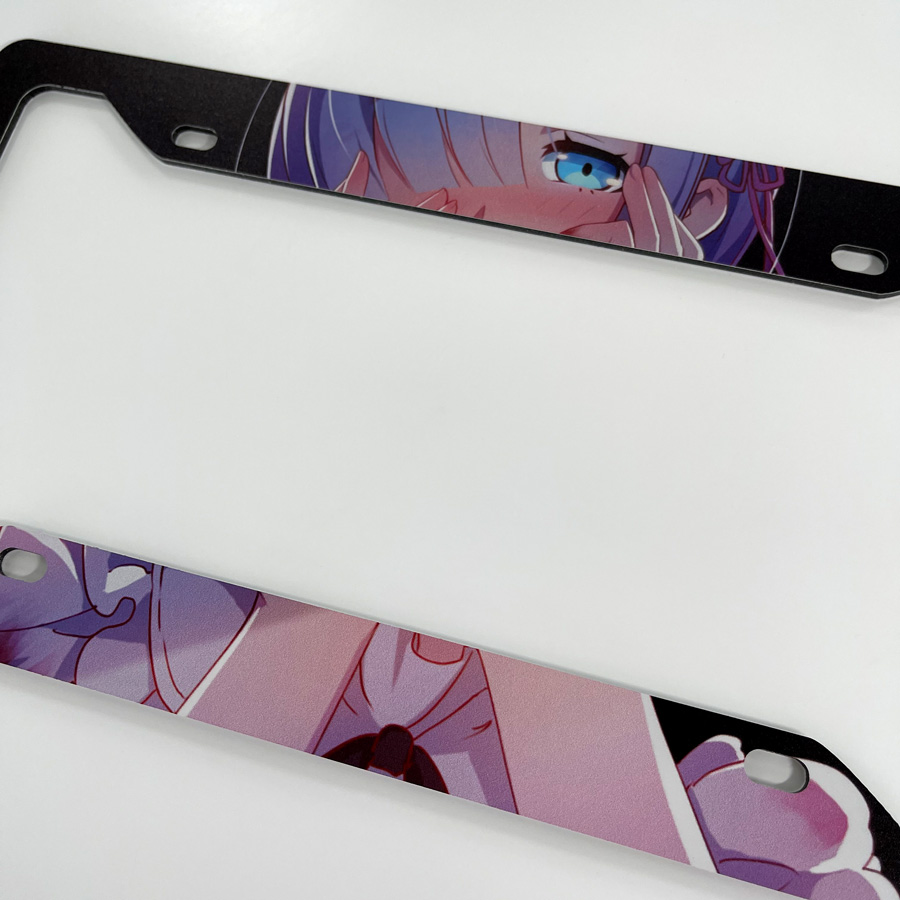 Rem v1 Blue Twin Maid Roswaal Mathers Water Magic Lye Oni Girl Anime Manga Printed Aluminum Composite Car License Plate Frame