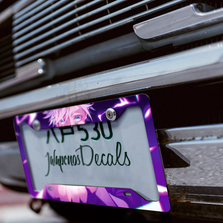 Satoru Gojo v1 Special Grade Sorcerer Limitless Six Eyes Blindfold Senpai Manga Anime Printed Aluminum Composite Car License Plate Frame
