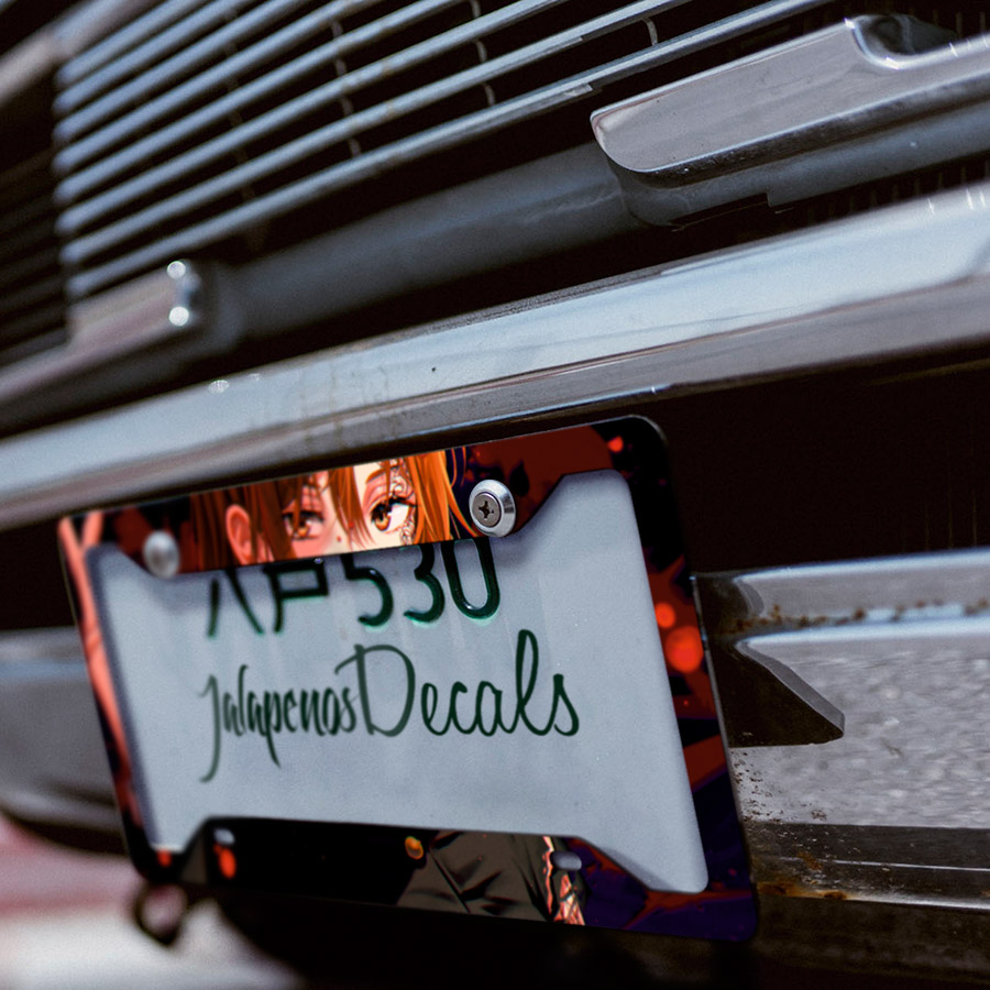 Nobara Kugisaki v3 Sorcerer Hammer Nails Straw Doll Roses Sexy Hot Waifu Manga Anime Printed Aluminum Composite Car License Plate Frame