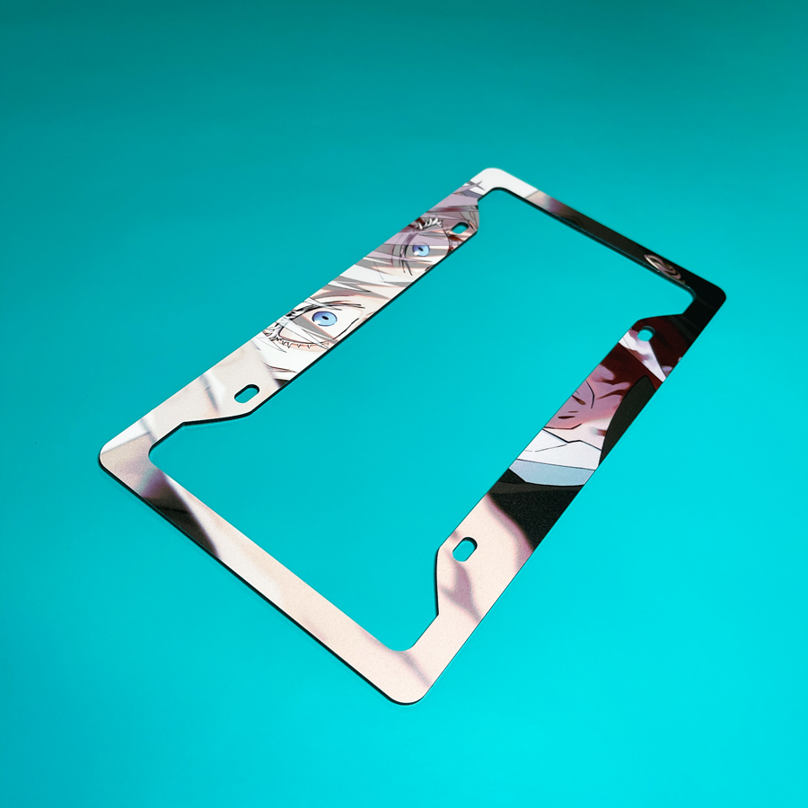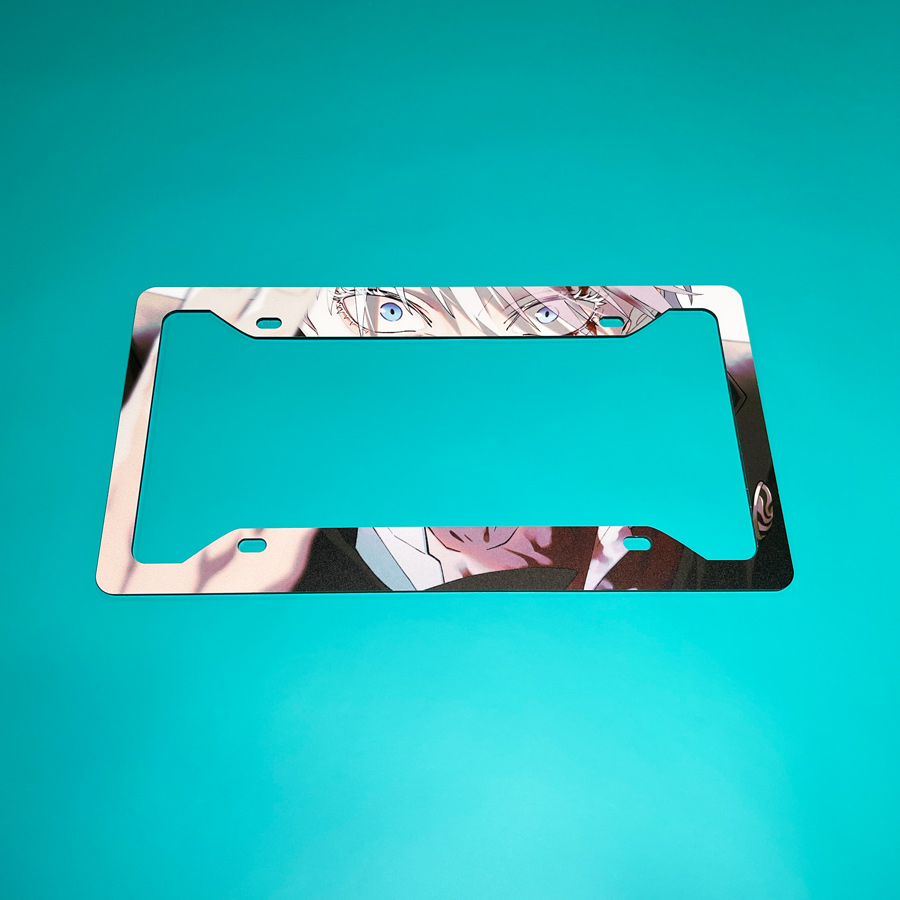 Satoru Gojo v5 Special Grade Sorcerer Limitless Six Eyes Blindfold Senpai Manga Anime Printed Aluminum Composite Car License Plate Frame