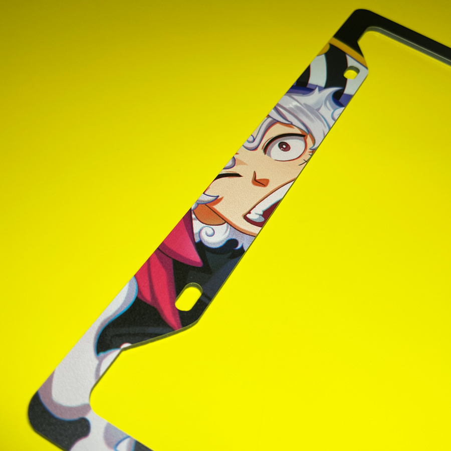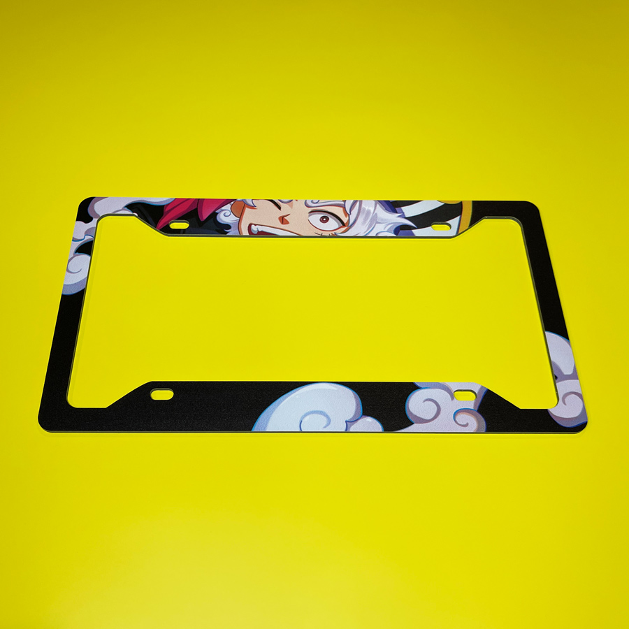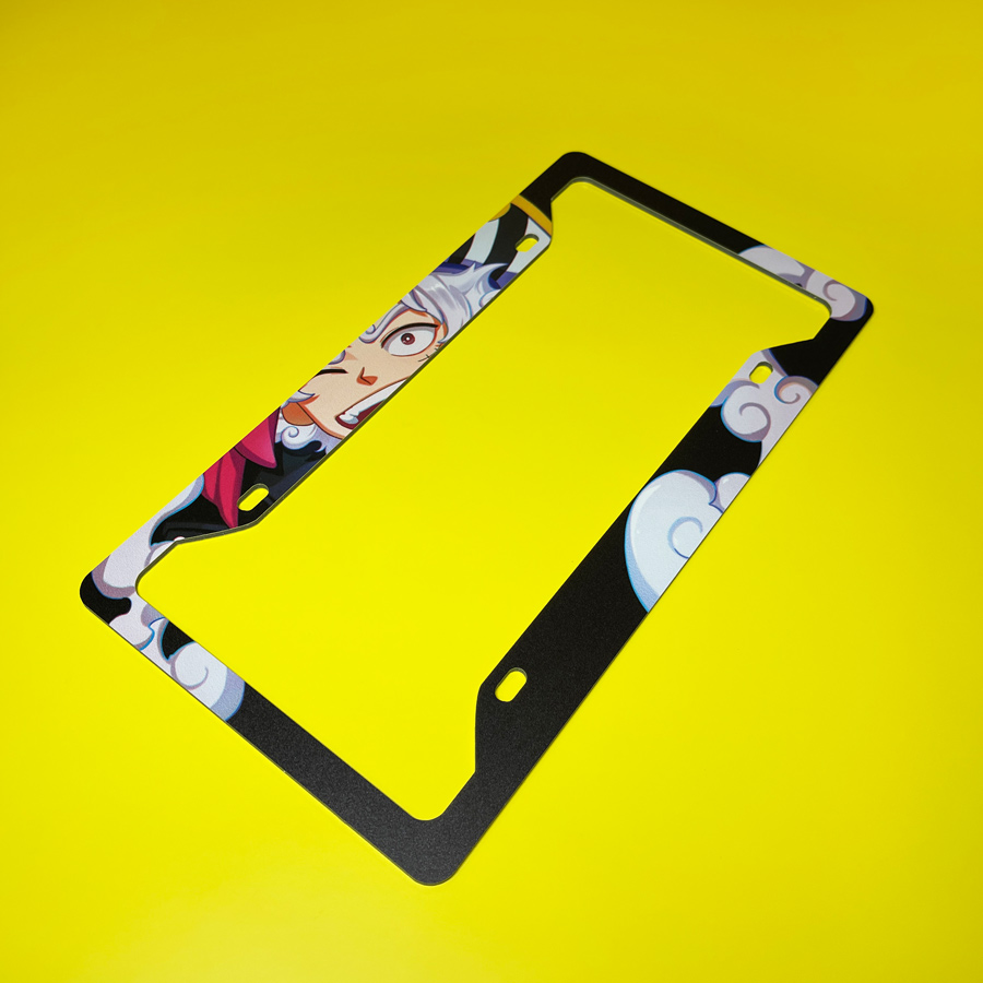 Monkey D Luffy v2 White Gear 5 Fifth Gomu Gomu no Mi Devil Fruit Clouds Straw Hat Grand Fleet Pirates Anime Manga Printed Aluminum Composite Car License Plate Frame