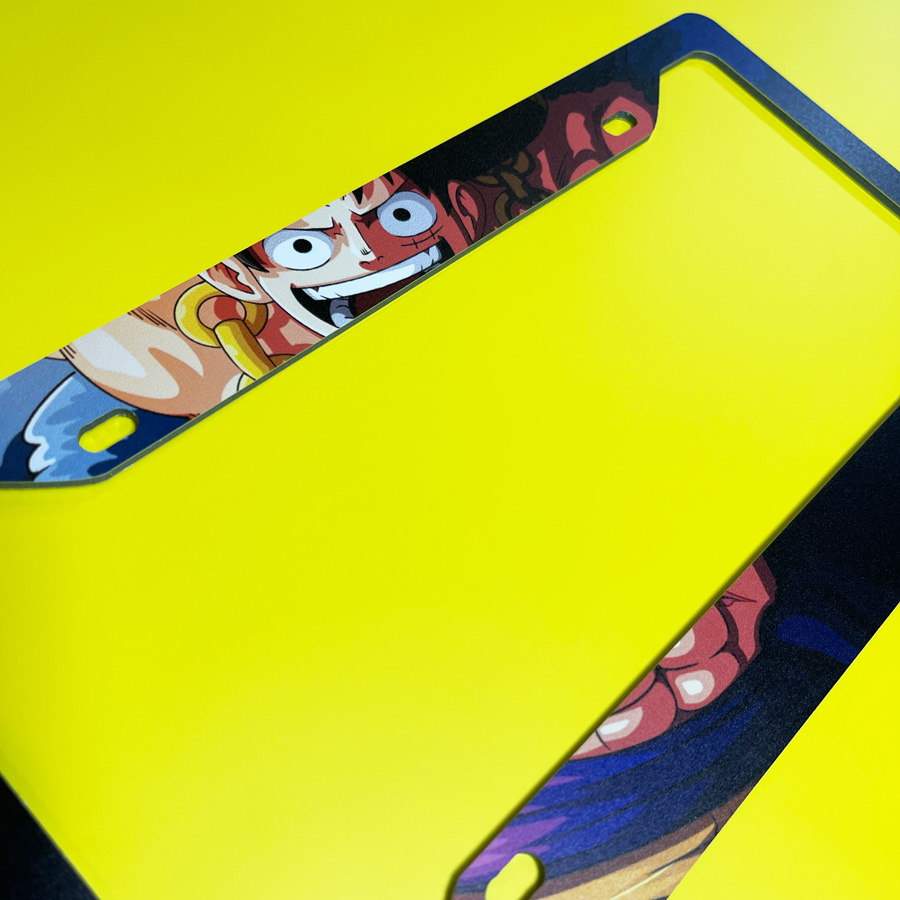 Monkey D Luffy v4 Captain King Straw Hat Grand Fleet Pirates Gomu Gomu no Mi Devil Fruit Anime Manga Printed Aluminum Composite Car License Plate Frame