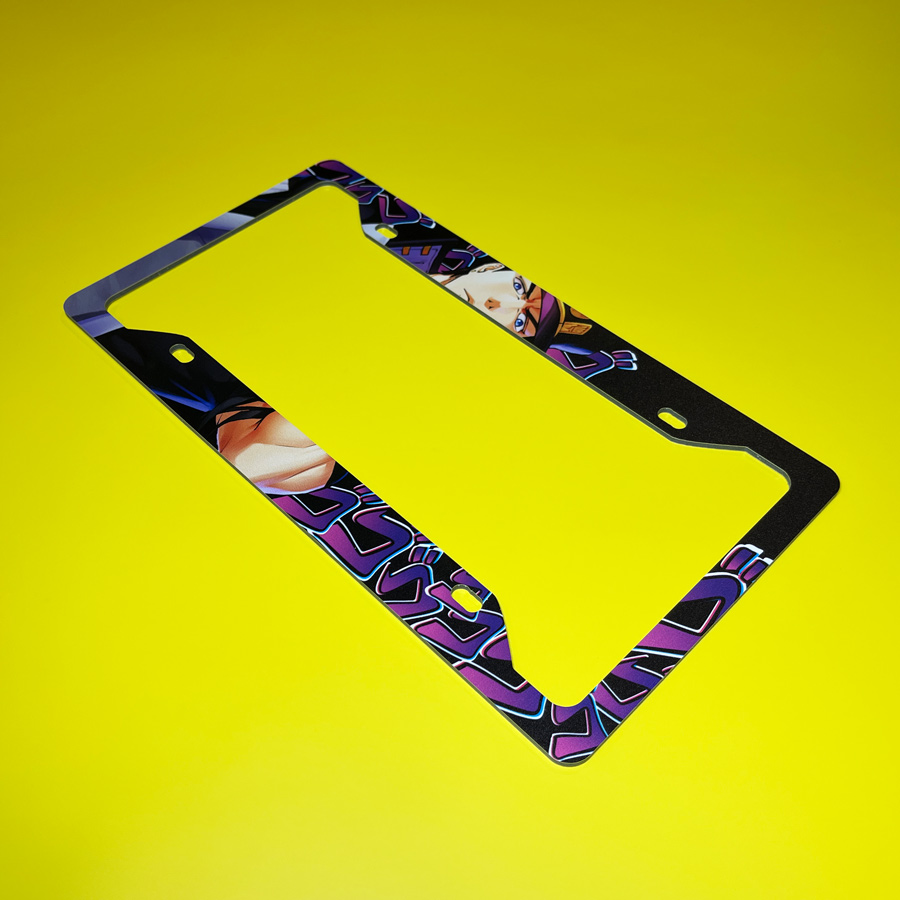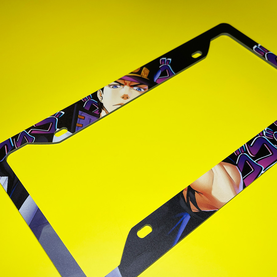 Jotaro Kujo v3 Stand Star Platinum Cap Golden Hand Symbol Chain Menacing Anime Manga Printed Aluminum Composite Car License Plate Frame