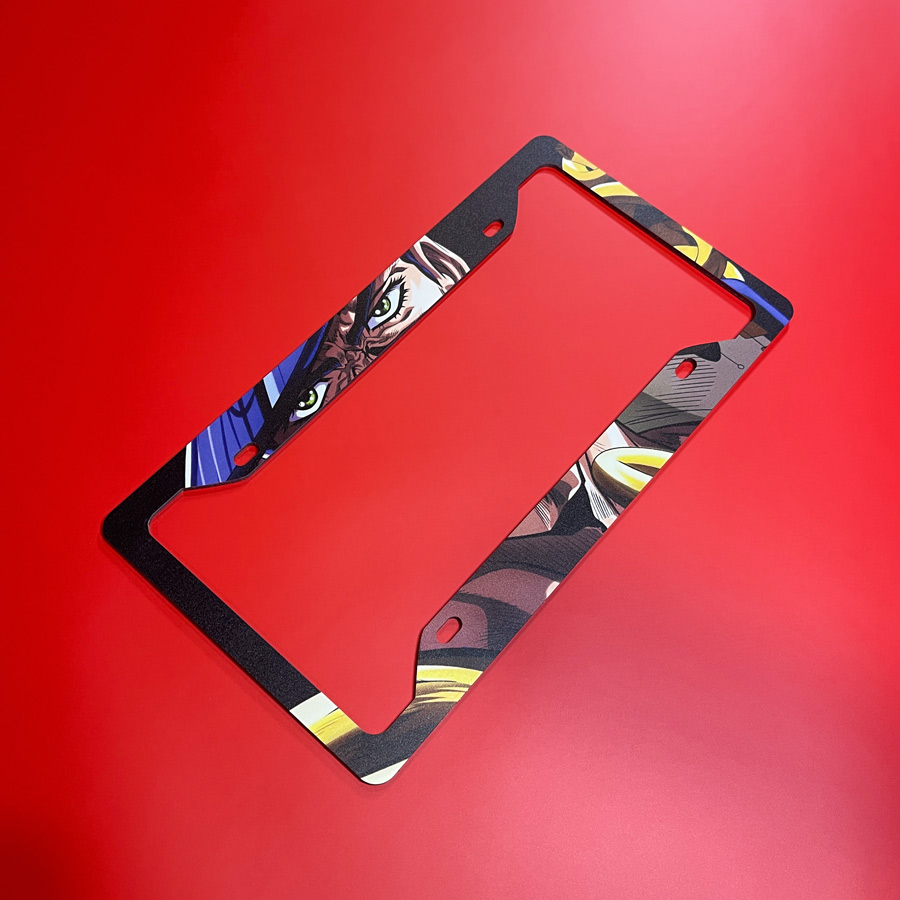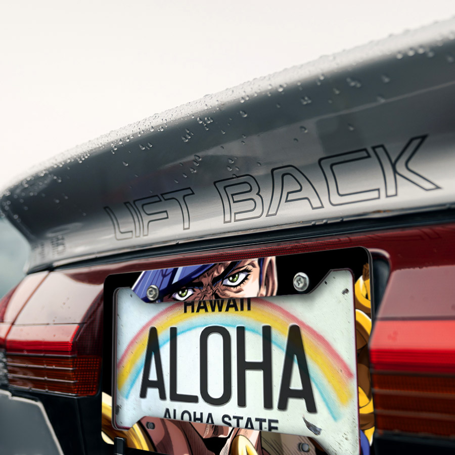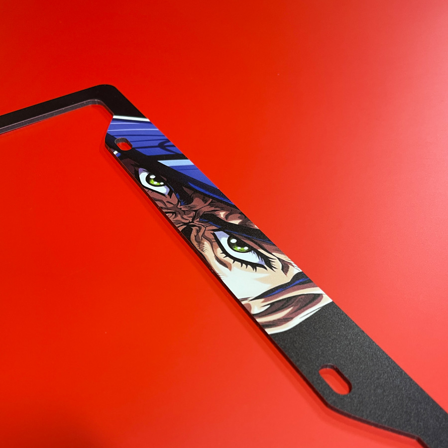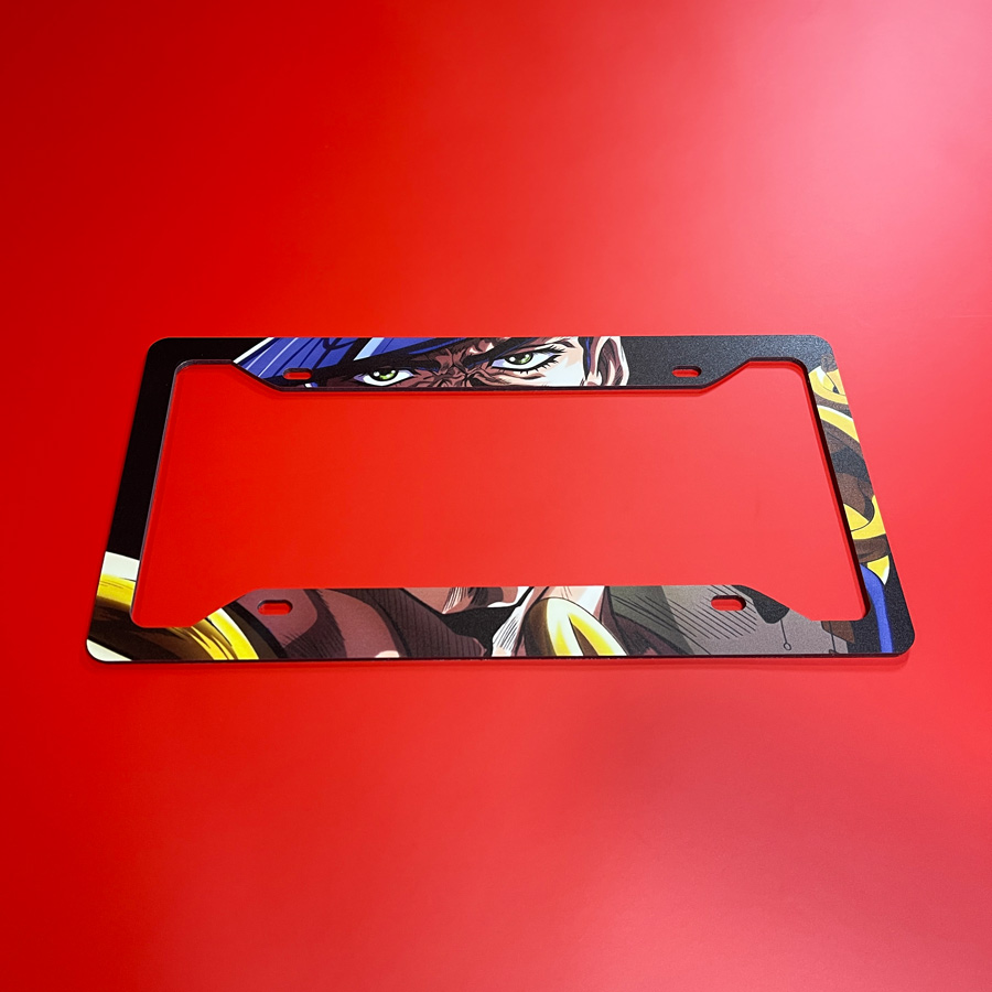 Jotaro Kujo v4 Stand Star Platinum Cap Golden Hand Symbol Chain Menacing Anime Manga Printed Aluminum Composite Car License Plate Frame