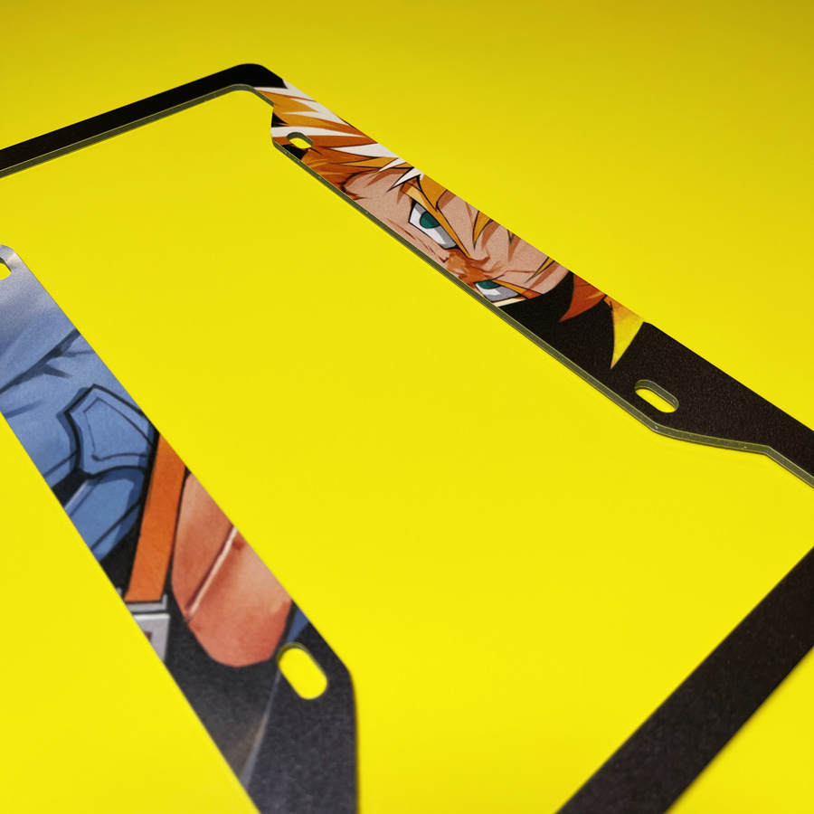 Trunks Brief v1 Future Mirai Saiyan Vegeta Bulma Capsule Corporation Z Super DBZ Kai Anime Manga Printed Aluminum Composite Car License Plate Frame