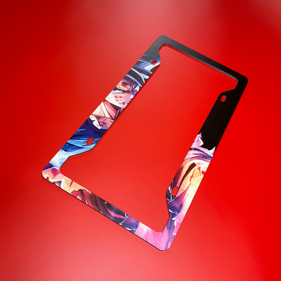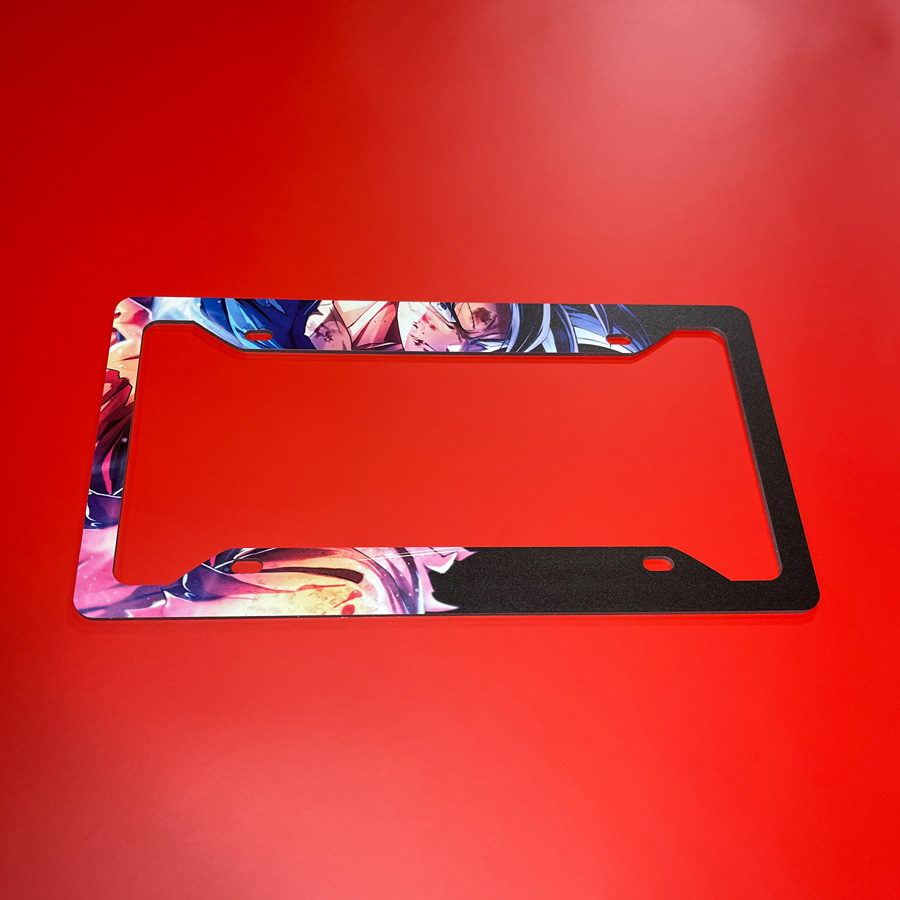 Son Goku v9 Black Super Saiyan Kakarot Strike Universe 7 Capsule Corp Z DBZ Anime Manga Printed Aluminum Composite Car License Plate Frame