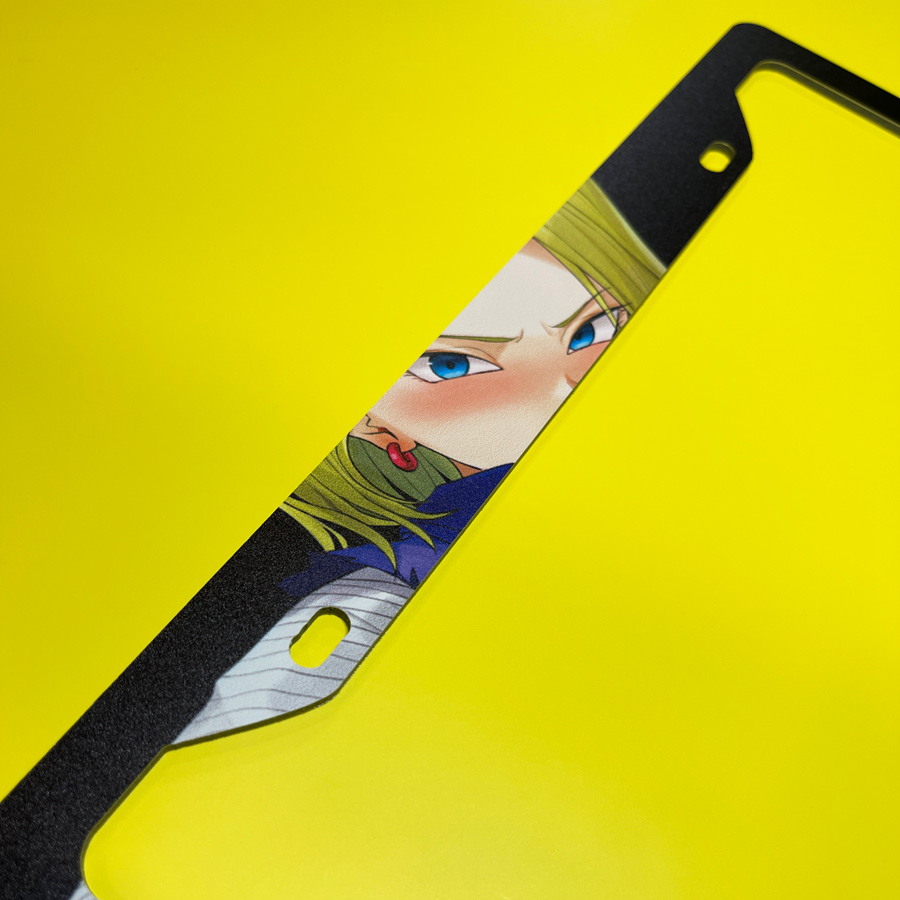 Android 18 v1 Lazuli Mrs. Krillin Goku Capsule Red Ribbon Army Team Universe 7 Z Super DBZ Kai Anime Manga Printed Aluminum Composite Car License Plate Frame