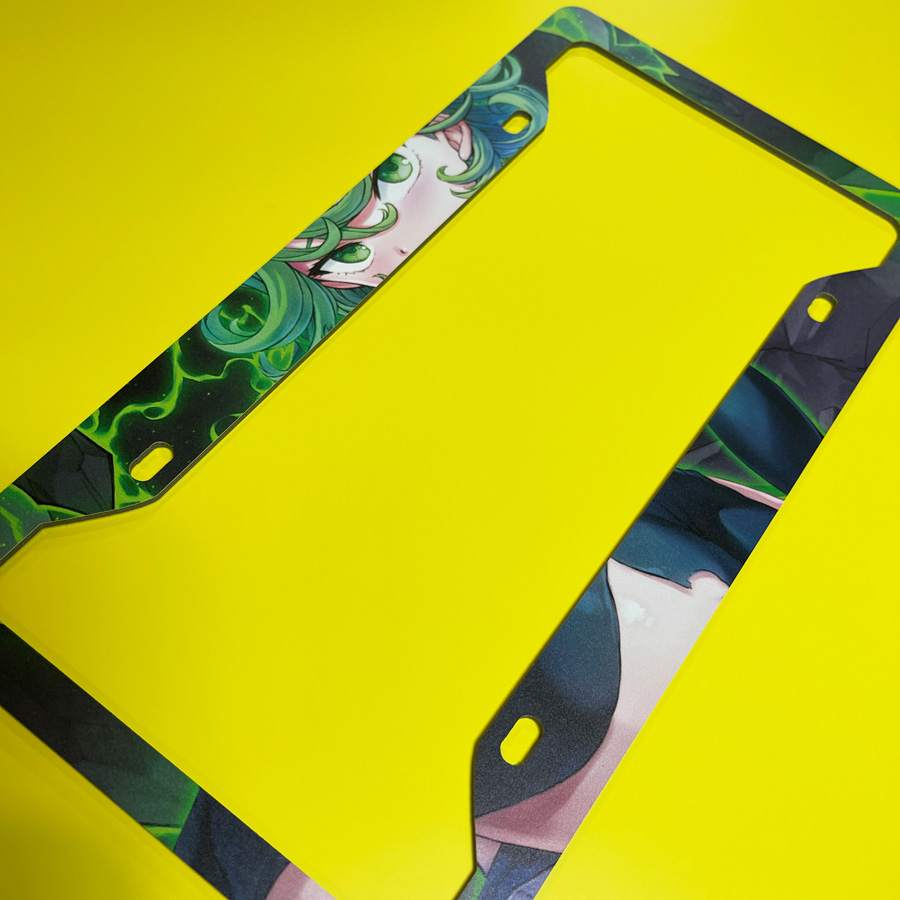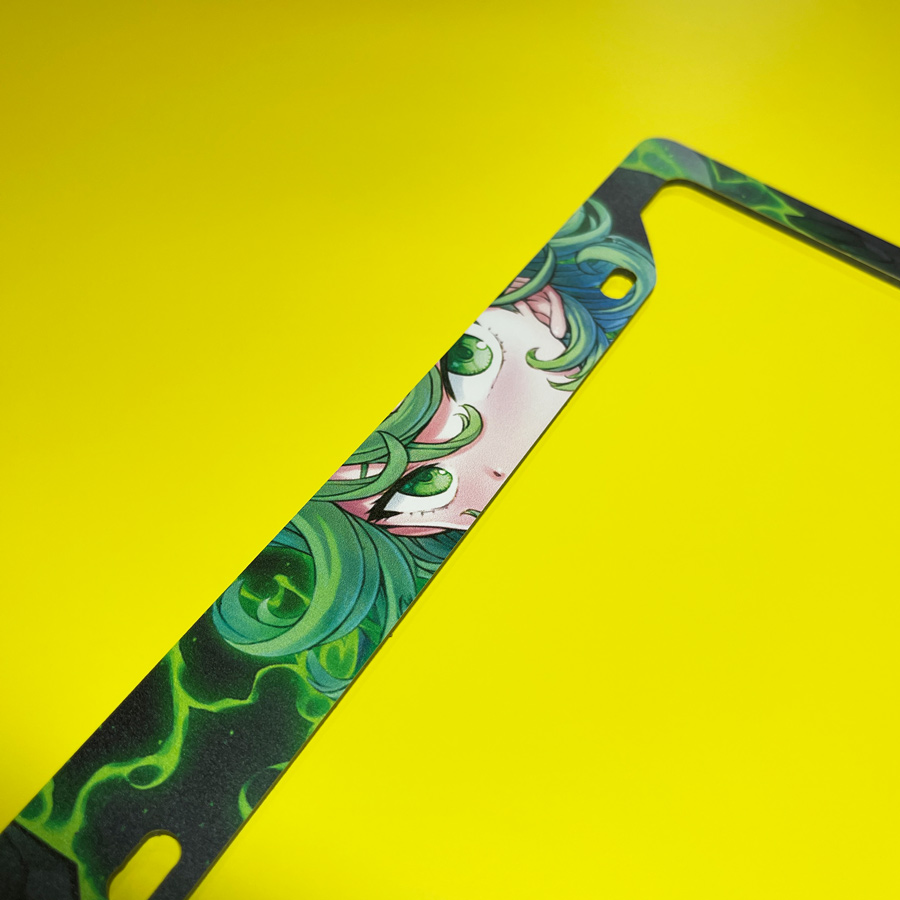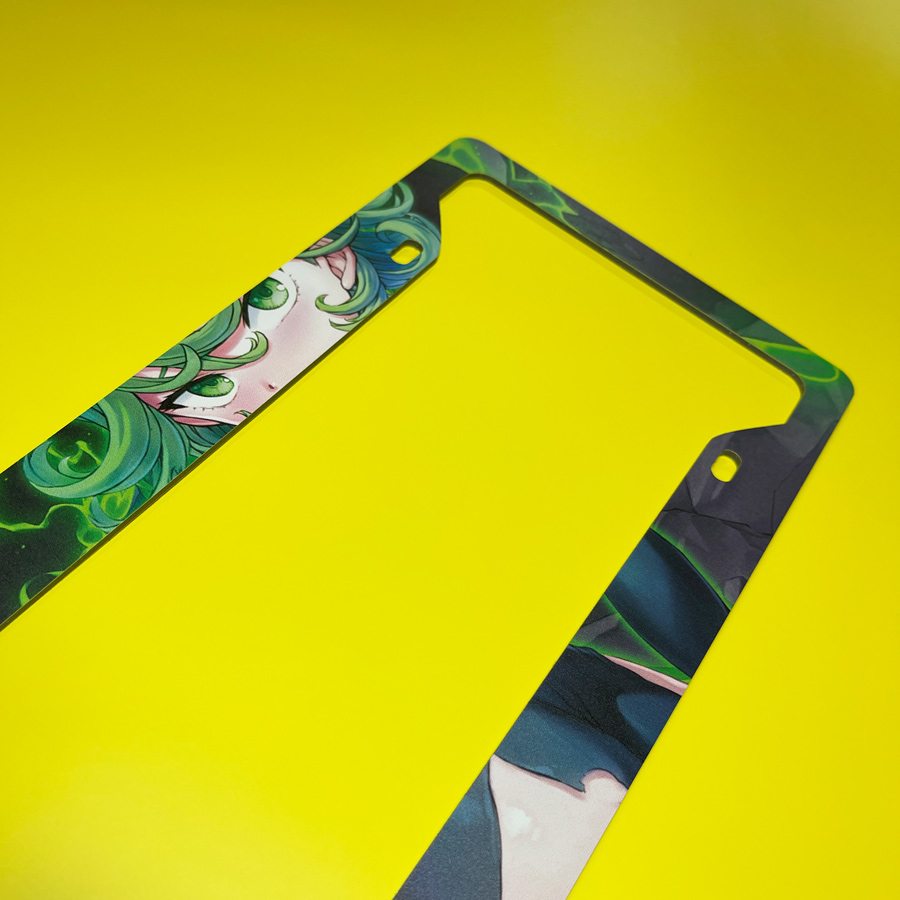 Tatsumaki v1 Tornado of Terror S-Class Rank 2 Hero Association Esper Psychic Sisters Fubuki Waifu Anime Manga Printed Aluminum Composite Car License Plate Frame
