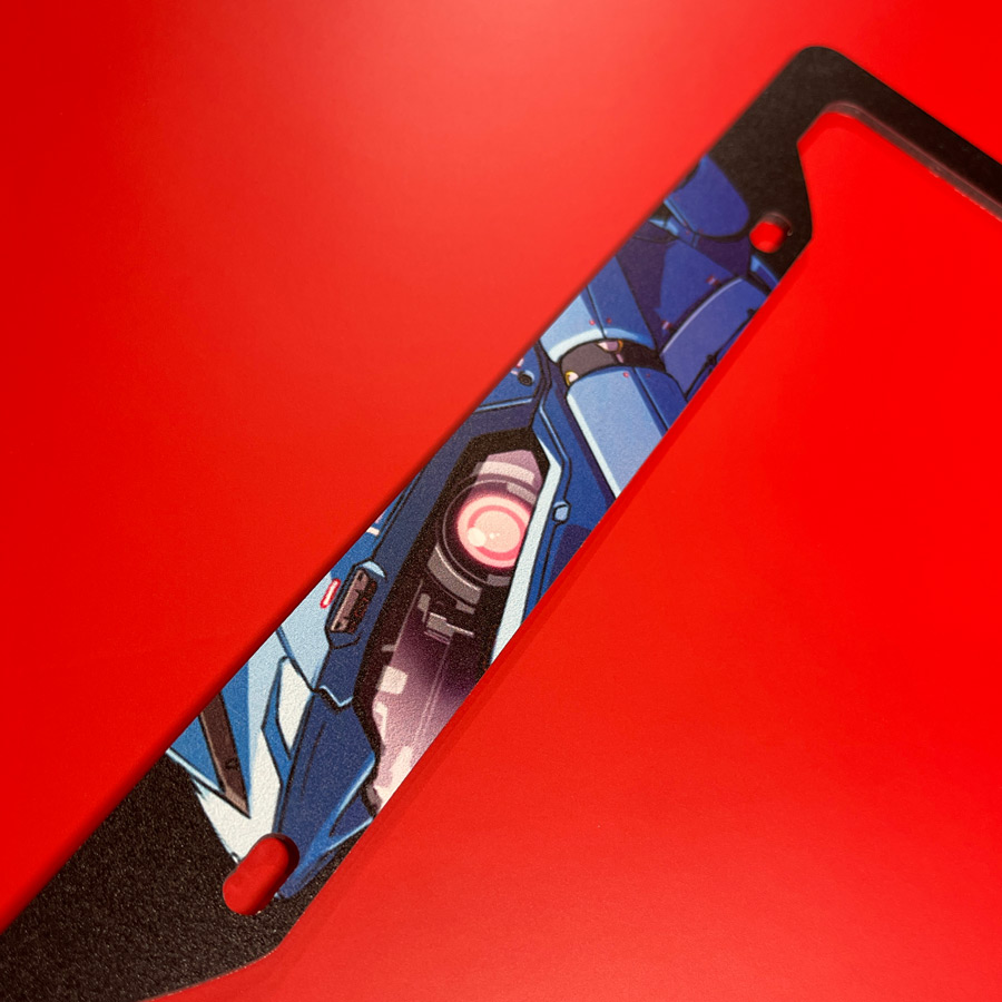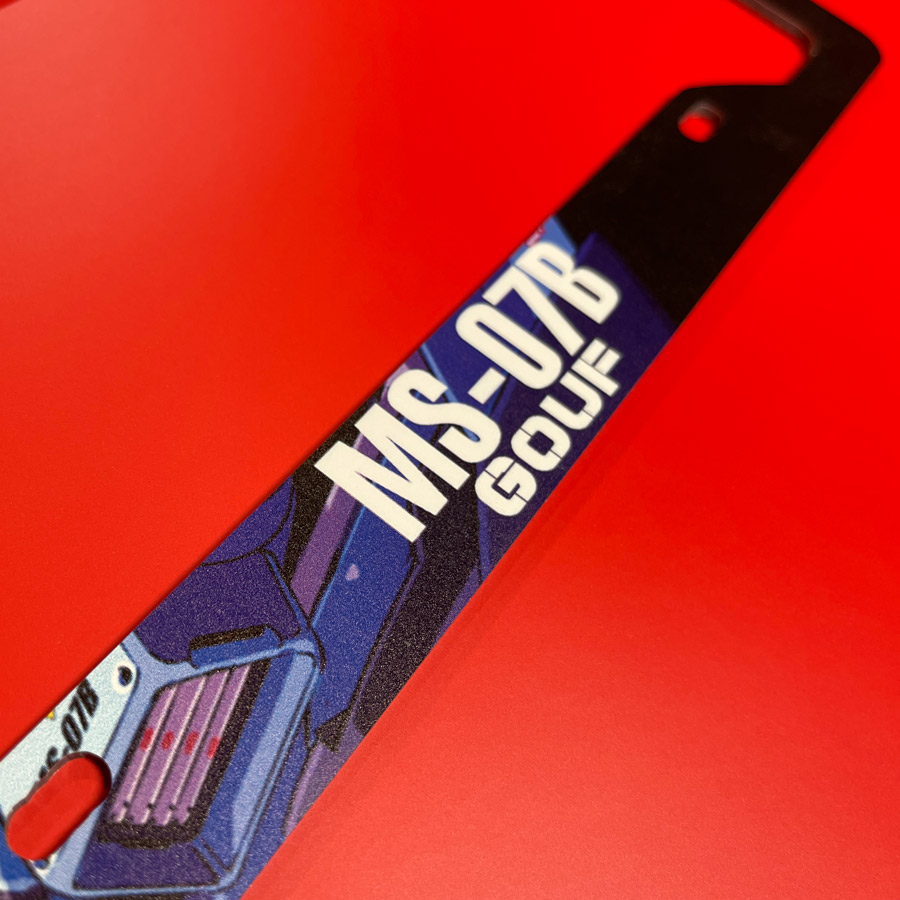 MS-07B Gouf v1 Ramba Ral Combat Ground Type Axe Principality Zeon Space Strike Fleet Mecha Robot Anime Manga Printed Aluminum Composite Car License Plate Frame