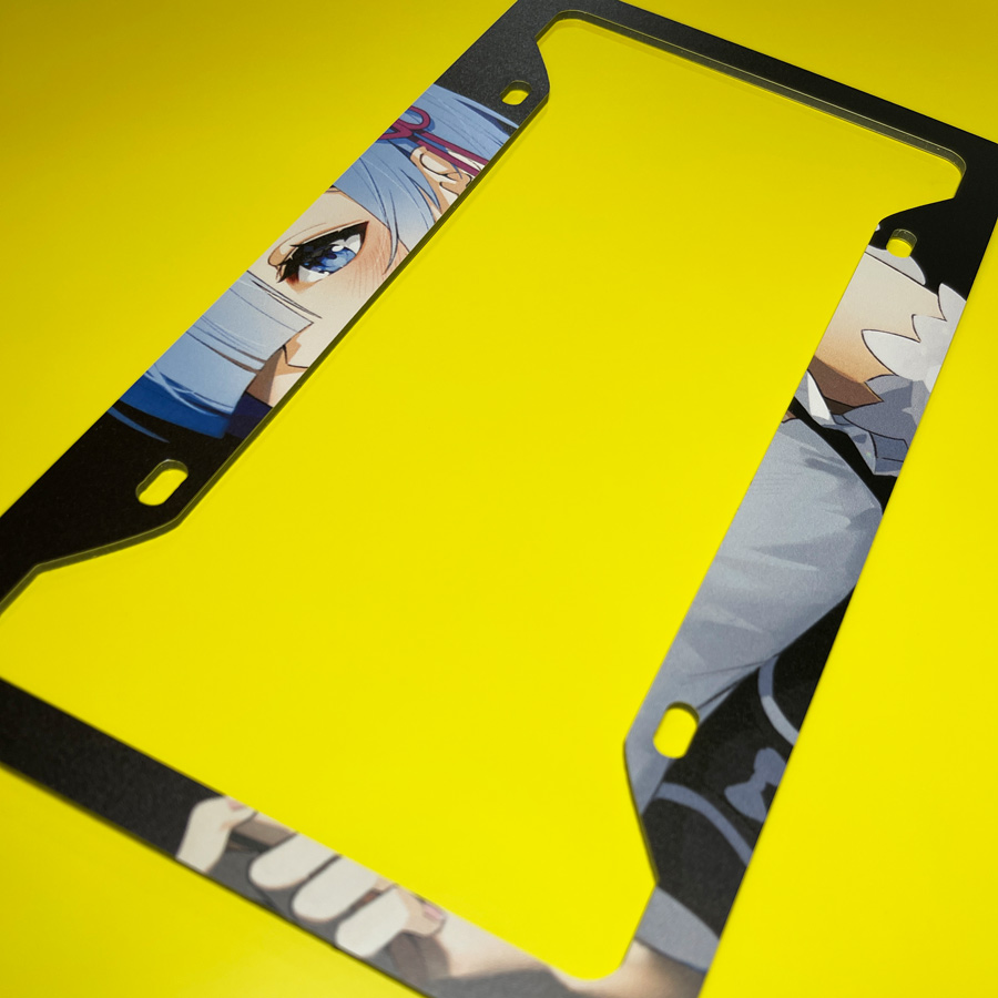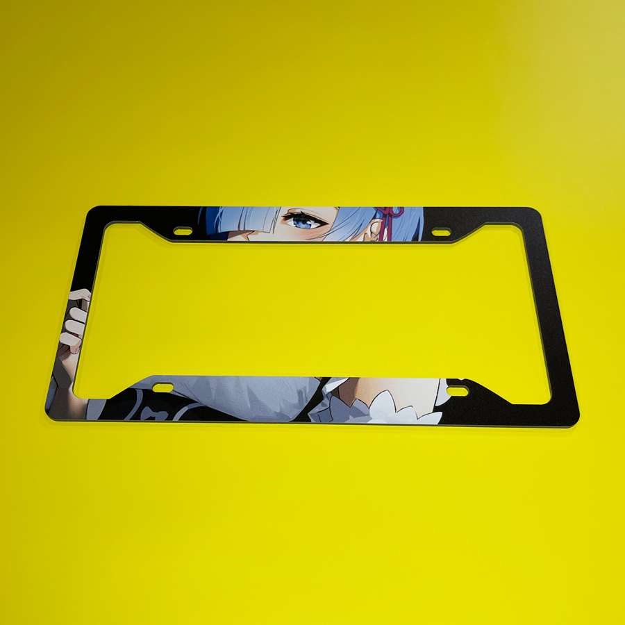 Rem v2 Blue Twin Maid Emilia Camp Roswaal Mathers Water Magic Lye Oni Girl Kingdom Lugunica Waifu Girl Anime Manga Printed Aluminum Composite Car License Plate Frame