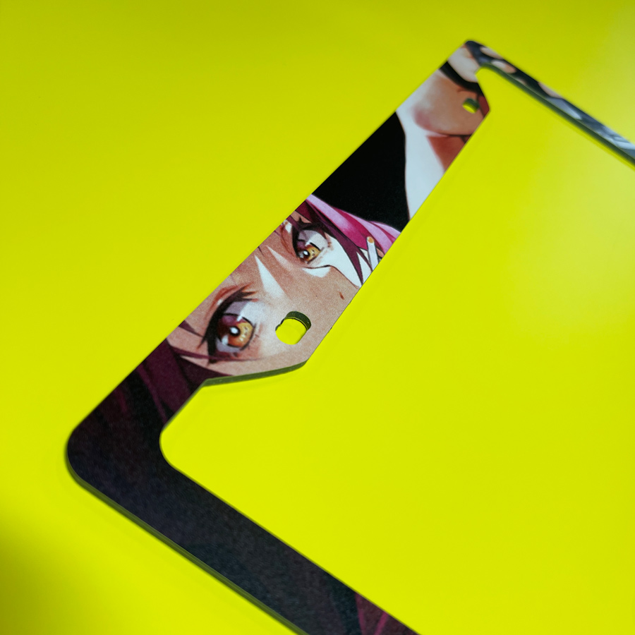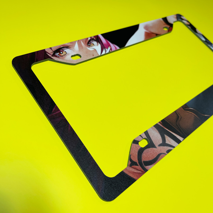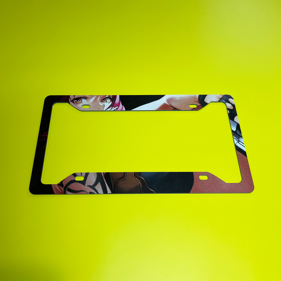 Revy v2 Rebecca Lee Two Hands Guns Modified Beretta 92F Rock Dutch Tatoo Girl Waifu Girl Printed Aluminum Composite Car License Plate Frame