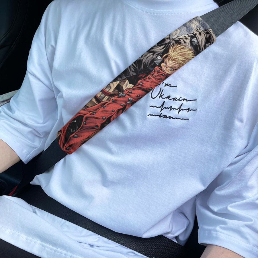 Vash Stampede v1 Gunsmoke Nicholas Wolfwood Meryl Stryfe Milly Thompson Eco Leather Printed Car Seat Belt Cover