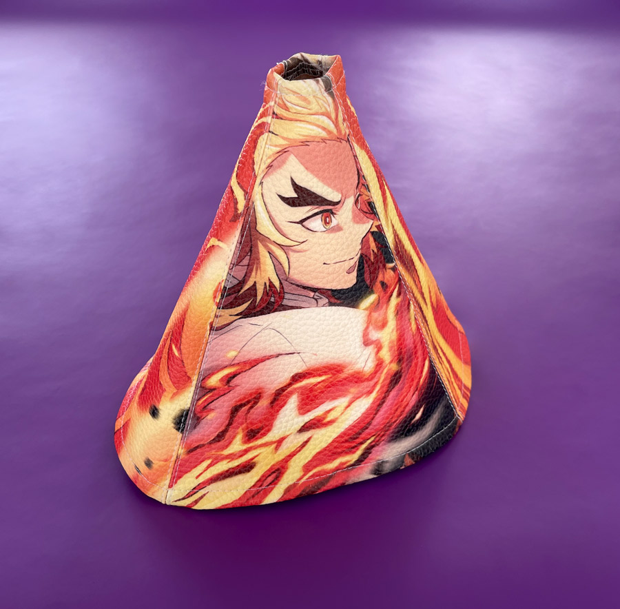 Kyojuro Rengoku v1 Flame Hashira Breathing Demon Corps Bug Eyes Blade Katana Weeb Otaku Anime Manga Eco Leather Printed Car Shift Boot