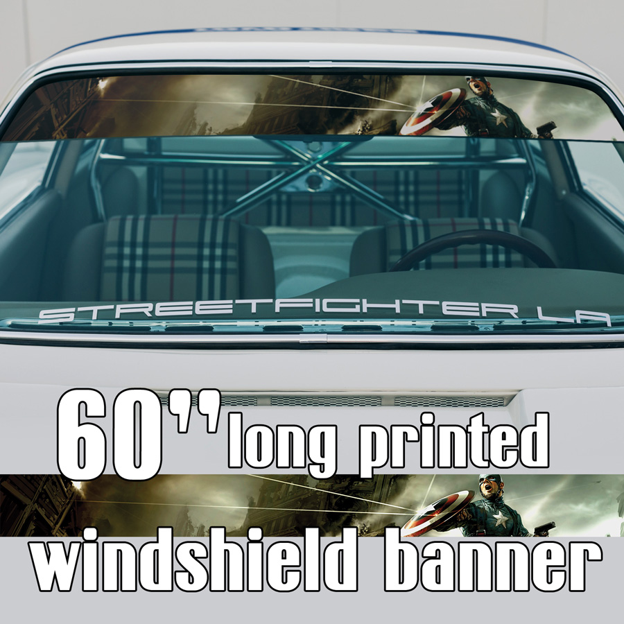 60" Steve Rogers v1 Shield Star Comic Superhero Sun Strip Printed Windshield Graphic Car Vinyl Sticker Decal