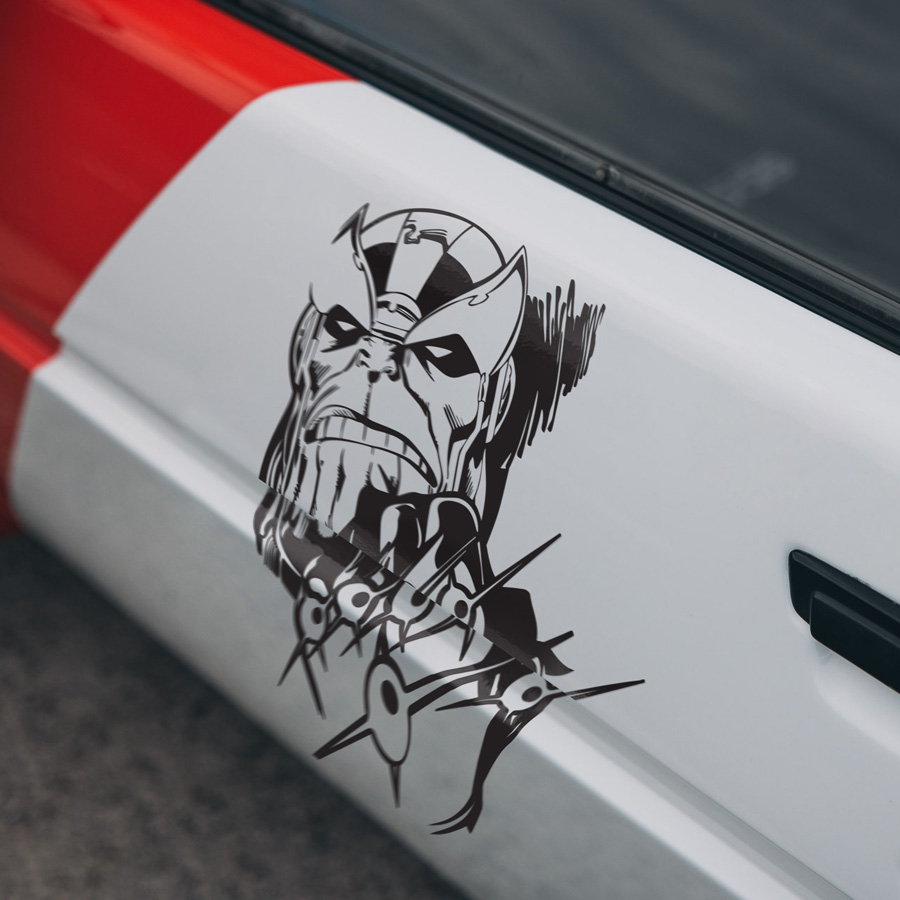 2x Pair Side Eternal Mad Titan v4 Gems Stones Glove Infinity Gauntlet Power Snap Decimation Gamora Nebula Black Order War Comic Car Vinyl Sticker Decal
