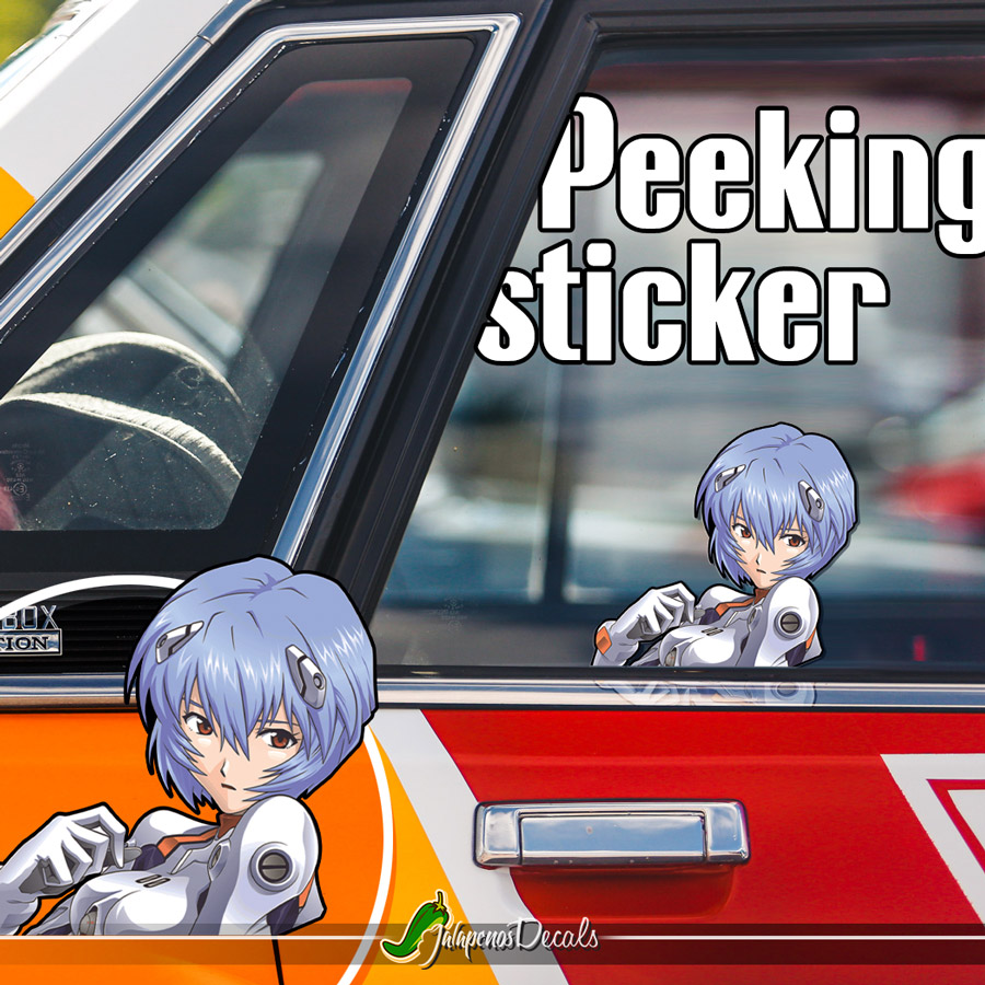 Peeking Rei Ayanami v3 Eva Unit 00 Angel NERV Anime Manga Funny JDM Racing Low Stance Anime Manga Car Vinyl Sticker Decal