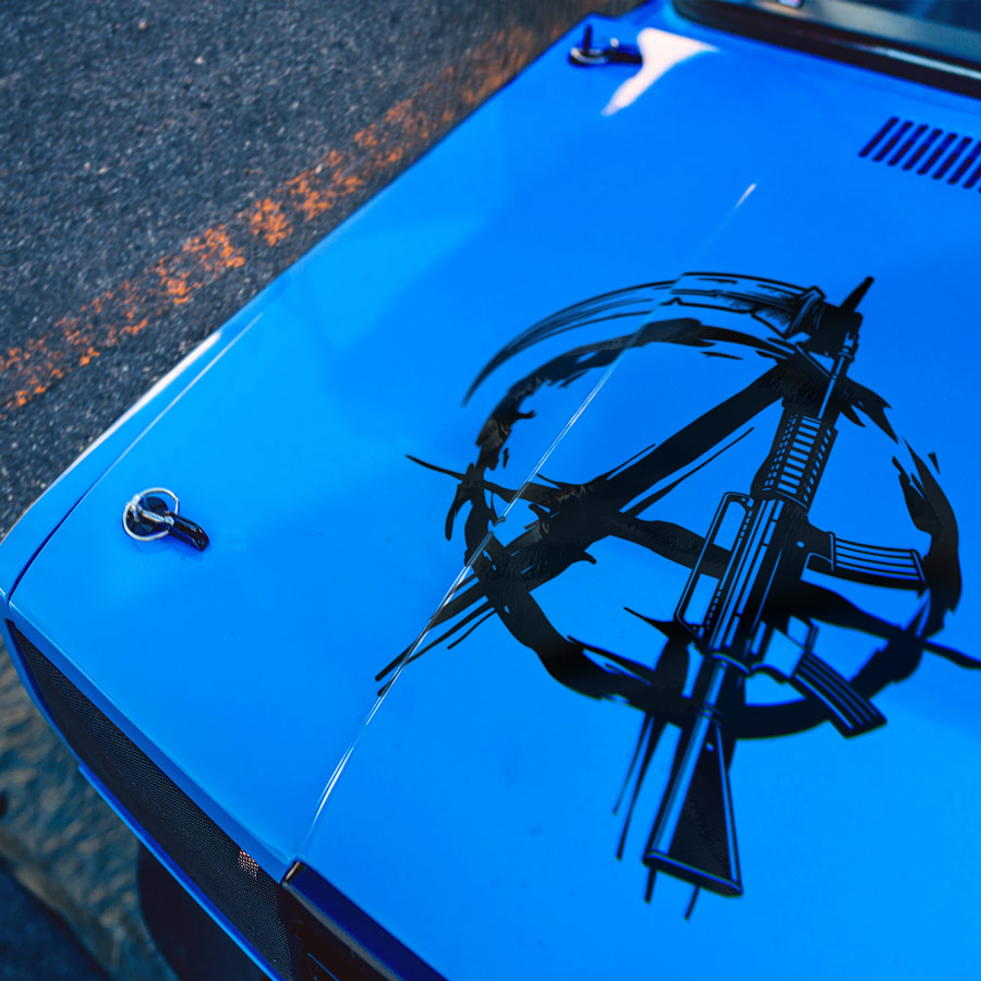 Anarchy Hood v1 Circle A Symbol Rebellion Order Chaos Guns Scythe Death Reaper Radical Freedom Resistance Street Outlaw Jacket Patch Moto Club Crew Car Vinyl Sticker Decal