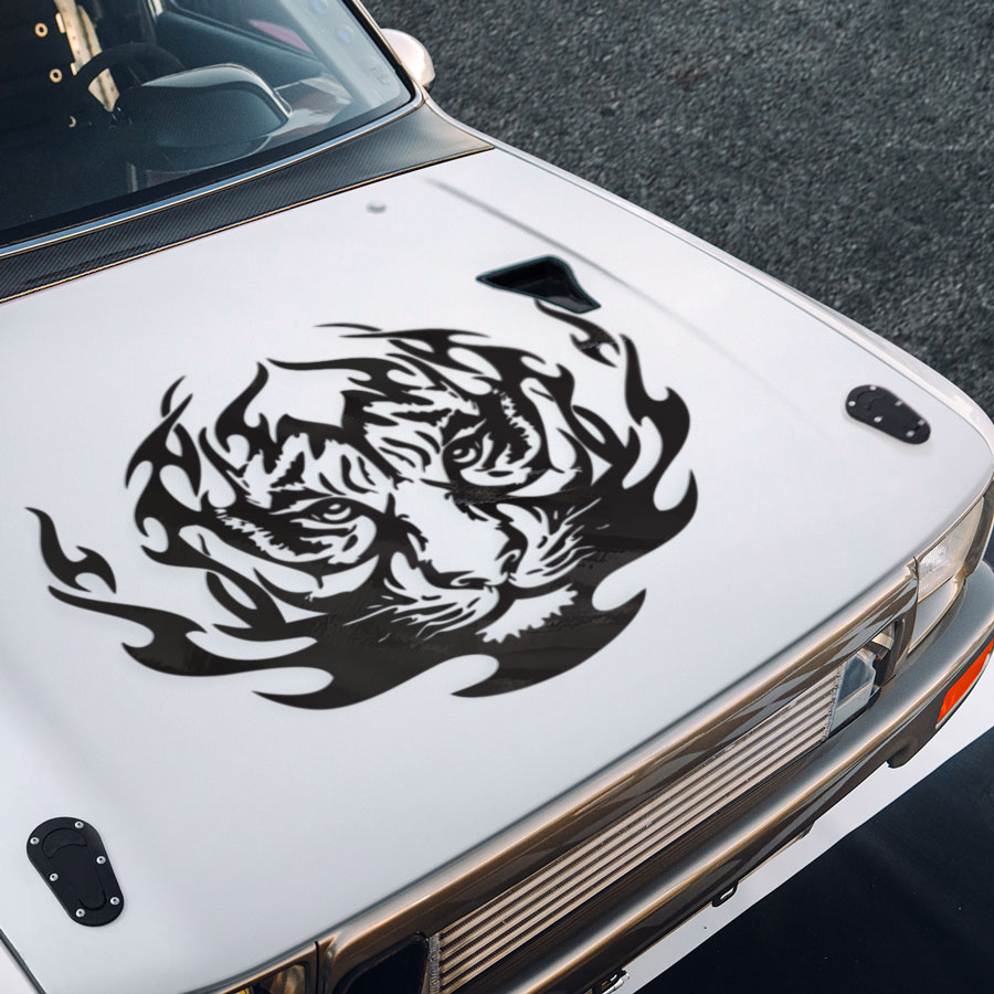 Tiger Hood Flame Tribal Graphics Fire Hot Rod Vintage Street Drag Racing Drift Circuit Track Warrior Muscle Car Vinyl Sticker Decal
