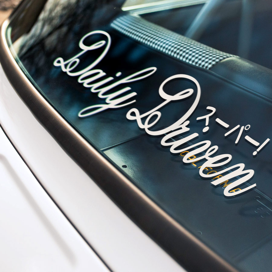 2x Pair Daily Driven Super Hiragana Kanji Drift Team JDM Low Stance Tuning Rising Sun Japan Car Vinyl Sticker Decal