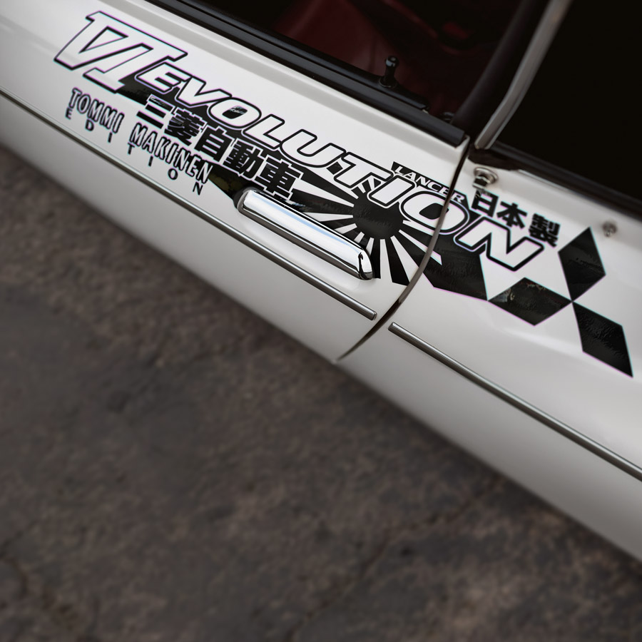2x Pair Side v8 VI 6 Lancer Evo 三菱 自動車 Tommi Makinen Edition Ralliart Ralli Racing JDM Japan Made Rising Sun Evolution GT-A RS GSR MR WRC MIVEC DOHC Car Vinyl Sticker Decal