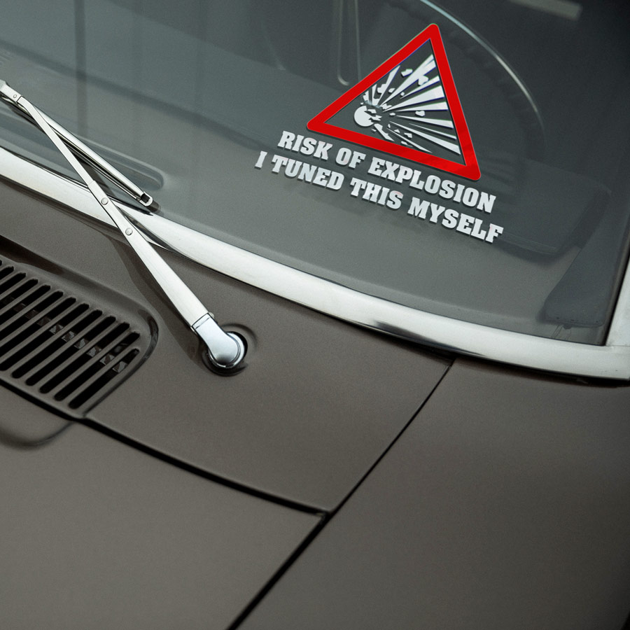 2x Pair Funny Risk Explosion JDM Tuned Stance Slammed Lowered Flush Vinyl Sticker Decal