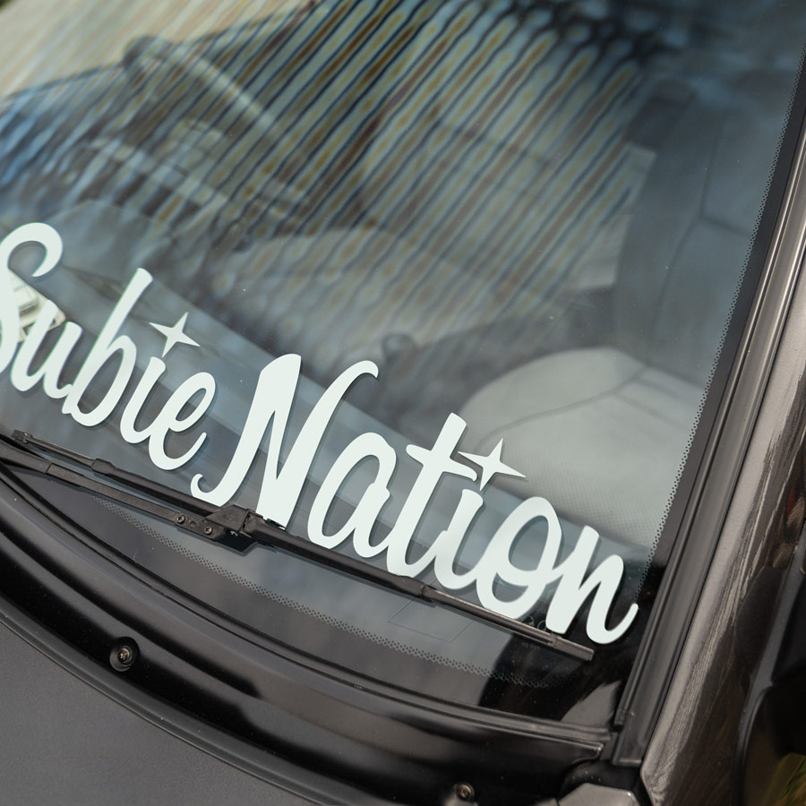 2x Pair Subie Nation Society Gang Turbo Charged Flutter Boost Power Engine Exhaust Racing Drift Rally Car Vinyl Sticker Decal