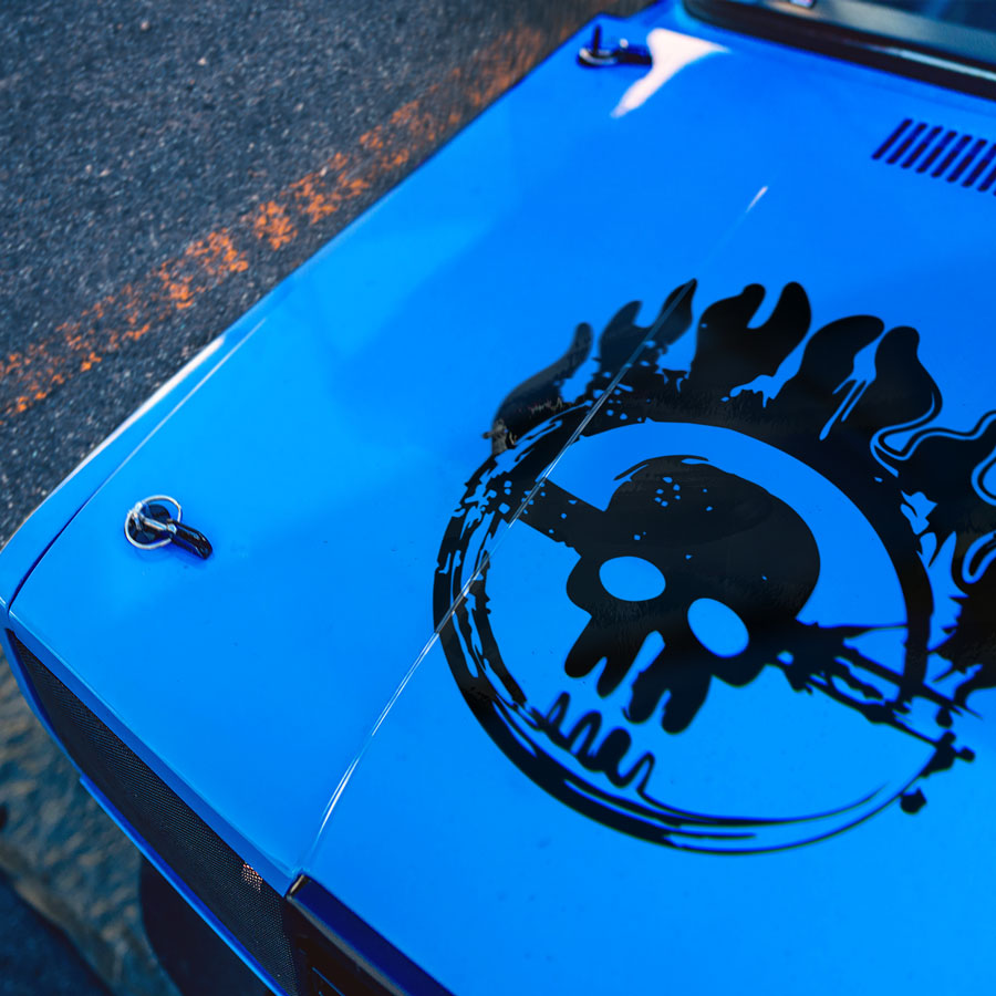Hood Distressed Skull v2 Immortan Joe Wasteland Citadel Gasoline V8 Interceptor Thunderdome War Boys Rig Convoy Lovely Day Fury Car Vinyl Sticker Decal