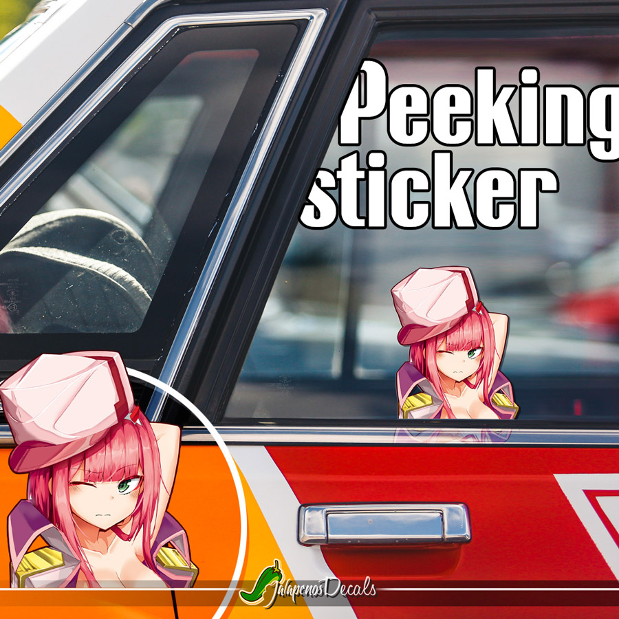 Peeking Zero Two v2 Code 002 Strelizia Otaku Weeb Anime Manga Girl Sexy Hot Boobs JDM Car Vinyl Sticker Decal