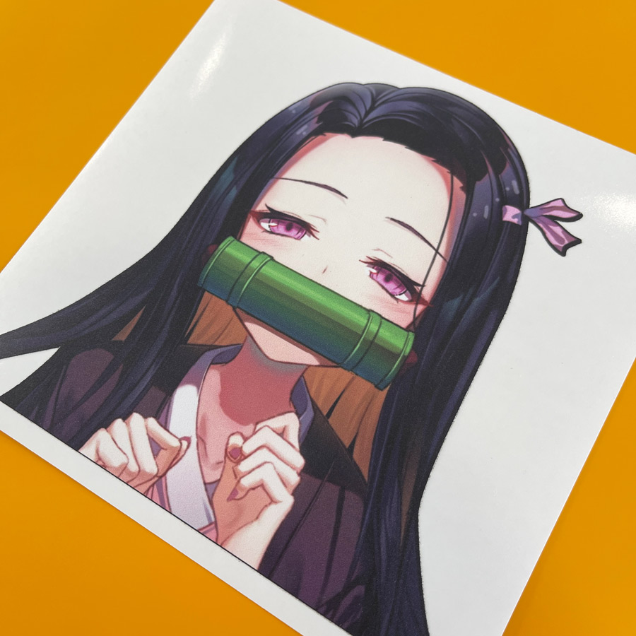 Peeking Nezuko Kamado v1 Demon Bamboo Gag Cute Otaku Waifu Anime Manga Girl Car Vinyl Sticker Decal