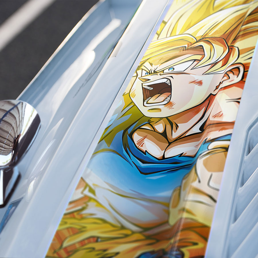 Son Goku v1 Super Saiyan Awakening Yellow SSJ SSJ1 Ki Kakarot Aura Universe 7 Kamehameha Z Super DBZ Kai Anime Manga Car Printed Hood Stripe Vinyl Sticker Decal