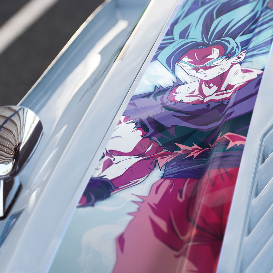 Son Goku Super v4 Saiyan Blue SSB God SSJB SSGSS Kaio-ken Ki Kakarot Aura Z Super DBZ Kai Anime Manga Car Printed Hood Stripe Vinyl Sticker Decal